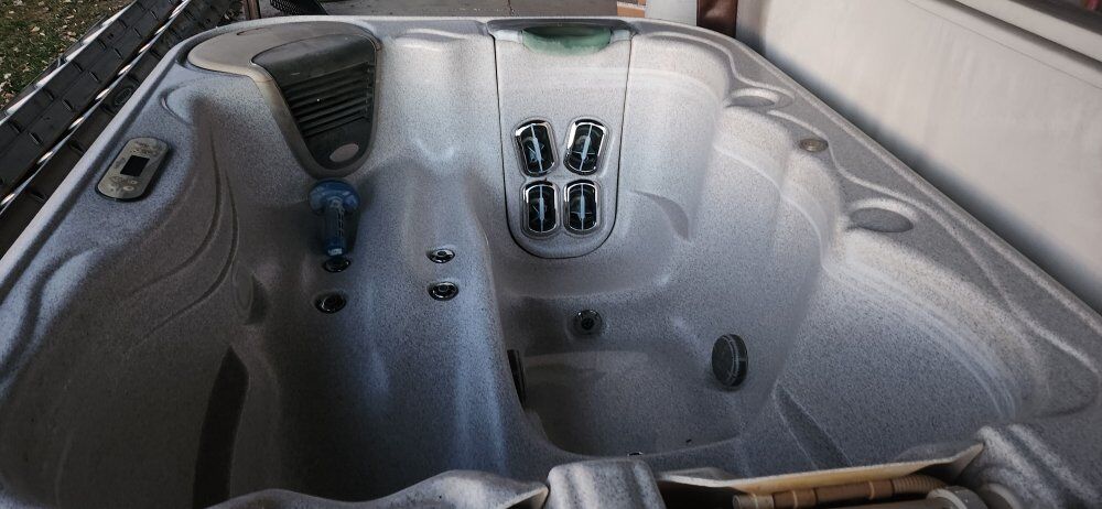 This is a smaller 2, to 3 person Tadpole model, BullFrog Hot tub. It runs on 220 power. Heats up to 105, very quickly. It all works great, jets blow strong. Exterior skirting is all intact, does have some blemishes here and there, faded spots, but functions as it should, and is insulated. Has a cover valet bar as well, for easy convenience of holding the cover, and makes a privacy wall. It could use a new cover. It functions ok, isnt waterlogged, just getting torn. I do have all the tops, and pillows to the jet packs, as well as an extra jet packs. I believe its the rainfall.