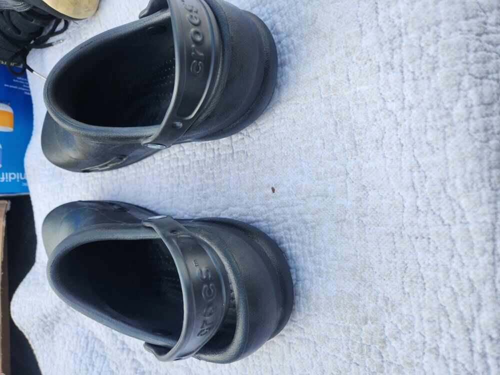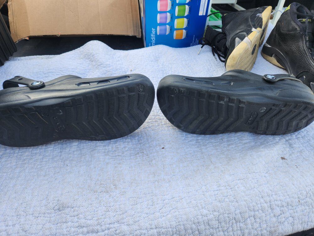Crocs Bistro Clog. This black, slip-resistant clog is specifically designed for professionals who spend long hours on their feet in environments like the food service, hospitality, and healthcare industries. Key Features Slip-Resistant: It features the proprietary Crocs Lock tread designed to enhance traction on surfaces with water, oil, and grease. Protective Design: The clog has an enclosed toe design and a thicker metatarsal area to help protect the foot from spills. Comfort: Made with fully molded Croslite material, the shoe offers lightweight, 360-degree comfort with contoured footbeds. Easy Care: The material is easy to clean with soap and water and dries quickly. Certifications: The shoe is certified to meet or exceed industry slip-resistance standards, including ASTM F2913 and CE certification.