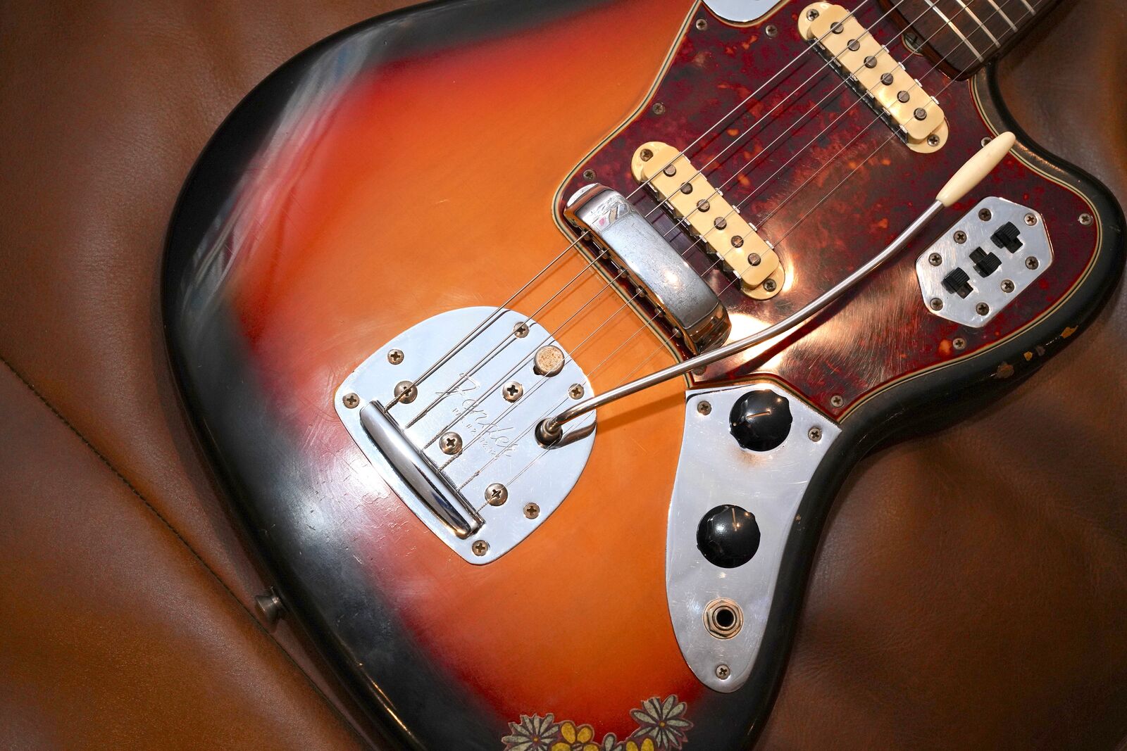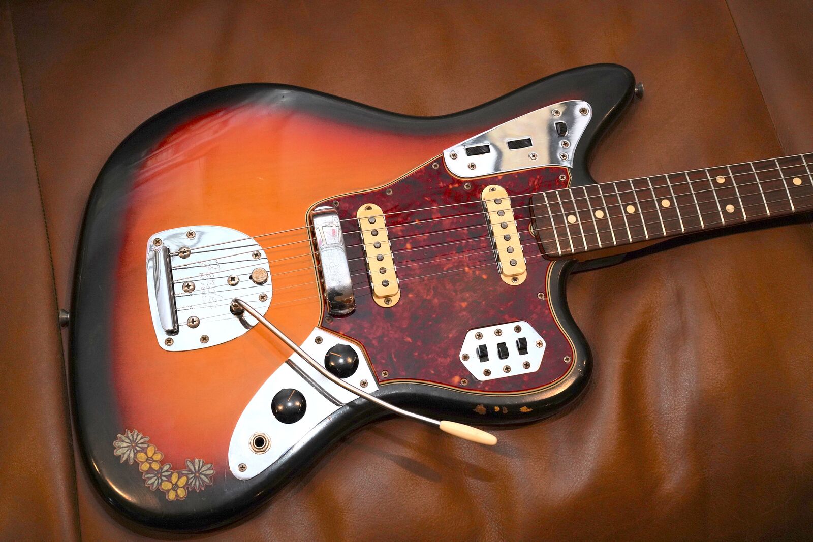 ApplePayEarly 1965 Fender Jaguar with original Sunburst Finish, L-series serial stamped neck plate and original case.