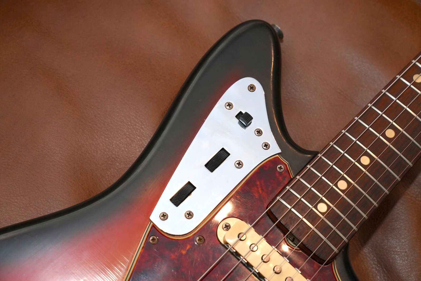 Really nice all-original '65 Jaguar. Great playing and sounding, original finish, hardware and pickups. Includes the string mute and bridge cover. The volume pot was replaced but the original is included in the case.