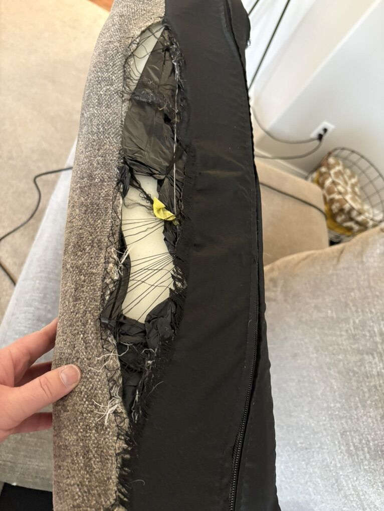VenmoGray sectional is in decent condition. I recently washed the cushion covers and the corner cushion tore in the washer (see photos). Some cushions kinda wonky as they are the seats that get sat on the most (see photos). Couch comes from a home with a toddler and dog so you will find dog hair on the couch but I will try to get what I can off. Pillows have been washed multiple times and I will wash once more. 10.5x12.5 feet approx. Venmo or cash only, pick-up in Nephi