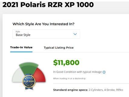 Trade in value according to Kelly Blue Book is $11,800-$15,748. It comes with extra full-sized doors and a utility box on the back. Runs great, we have just taken our outdoor recreation in a different direction