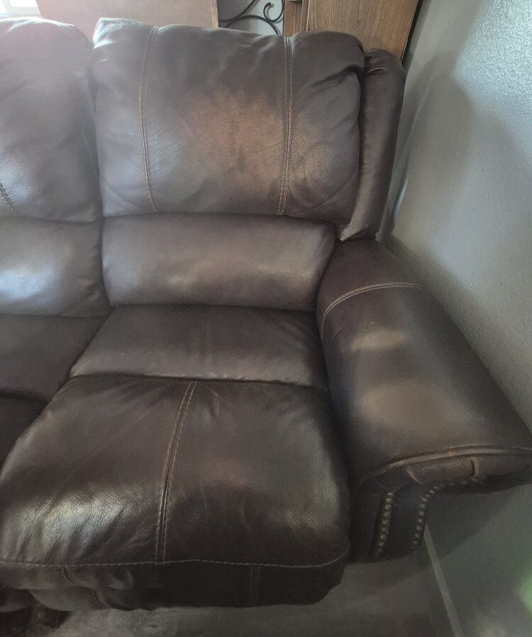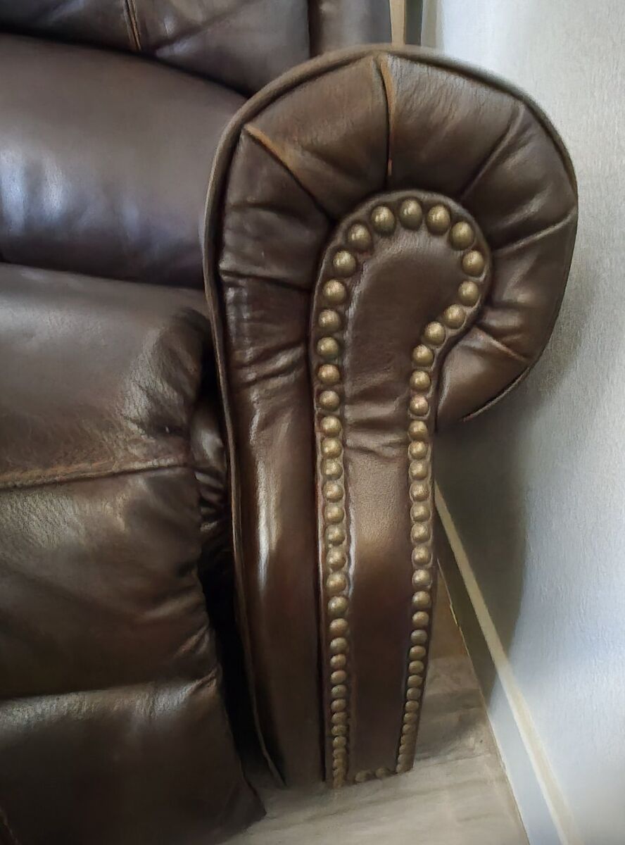 VenmoPower Reclining, Leather Couch, with Nail Head Design. the 2 end seats recline.