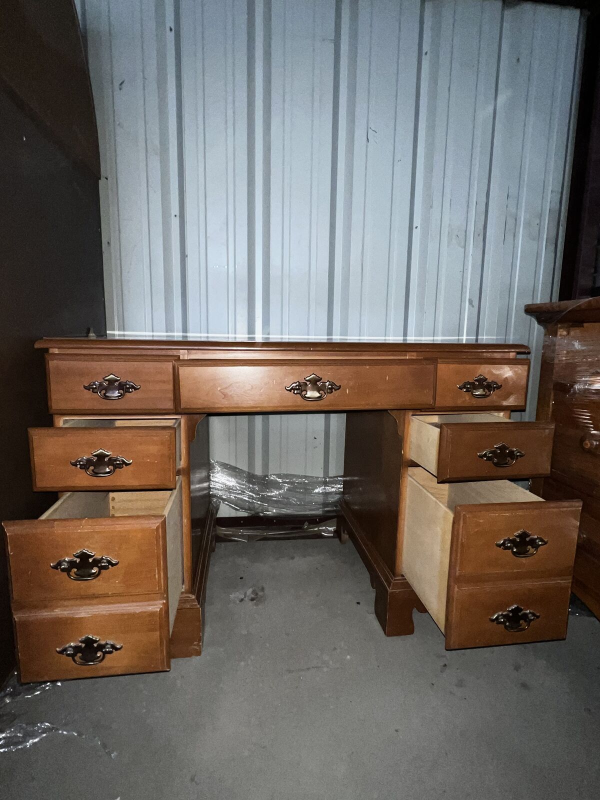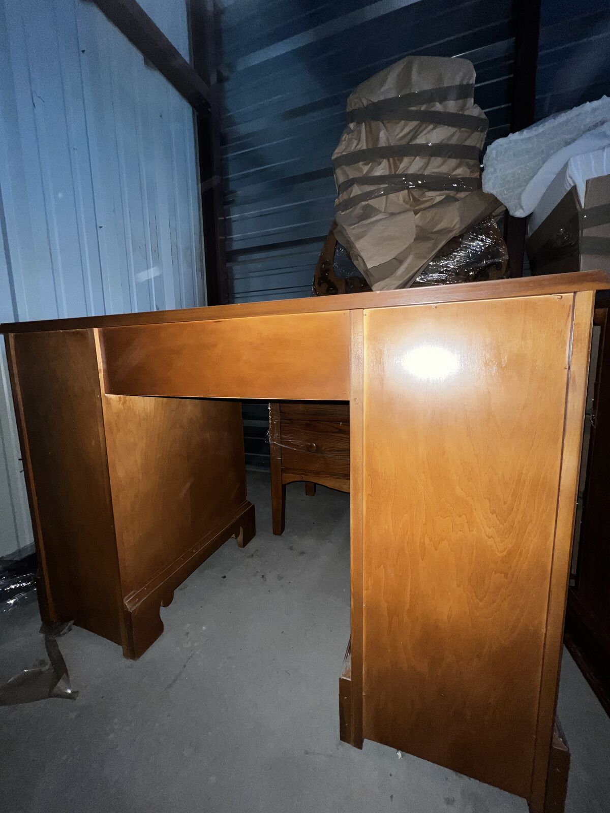VenmoLarge wooden desk in good condition, minimal wear and tear. Looks to be from the 60s, most likely made of maple, sturdy with incredible craftsmanship.