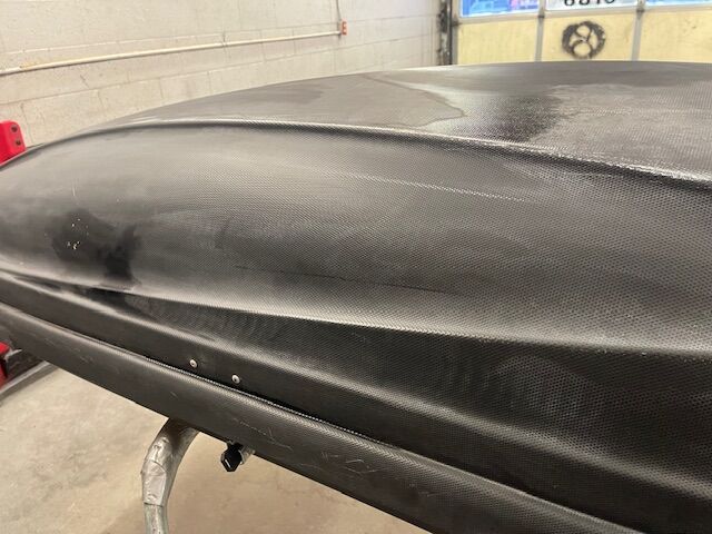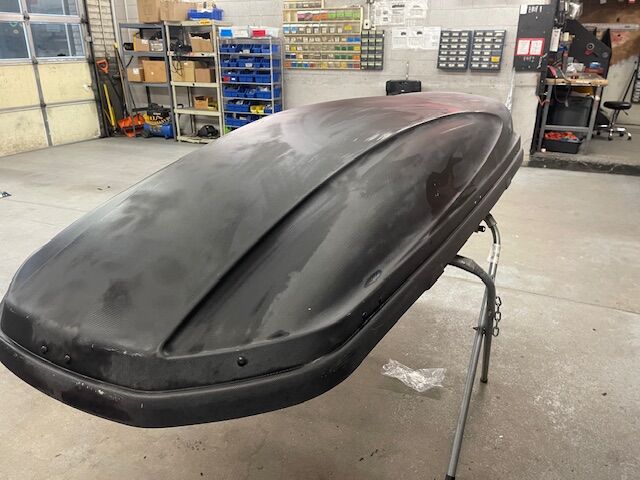 We currently have a used Thule cargo box for sale. It is pretty big in size around 20 cubic feet. It does have a small crack in the lid. It has been patched. Stop by any time to take a look at it. Sold As Is no Warranty