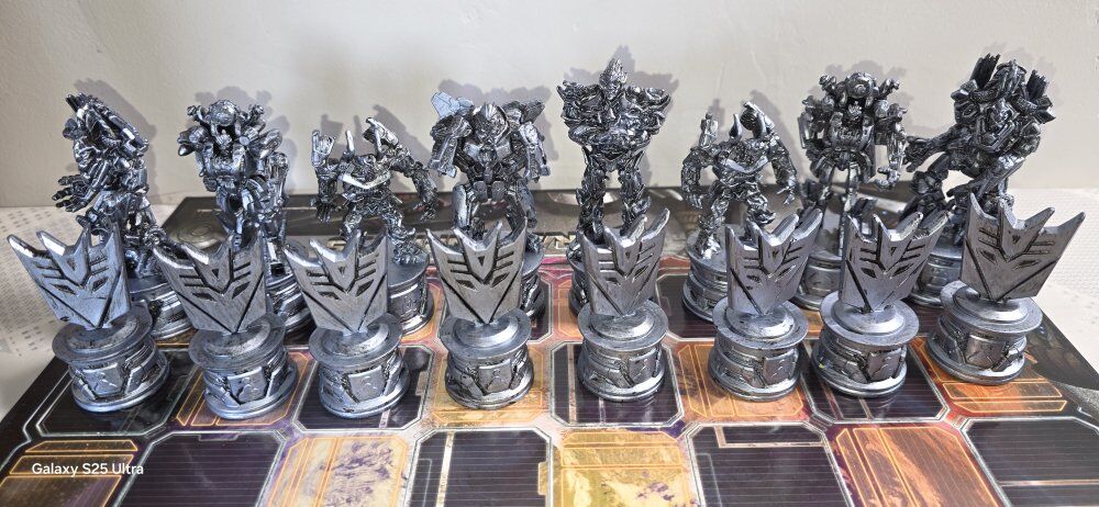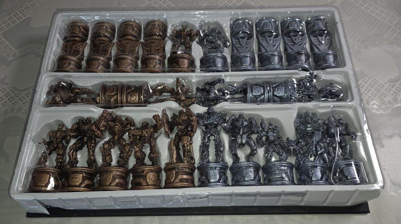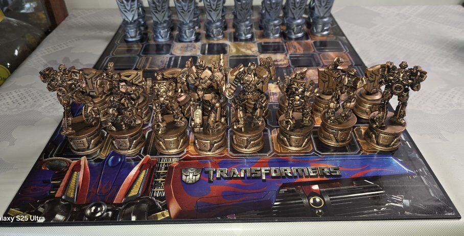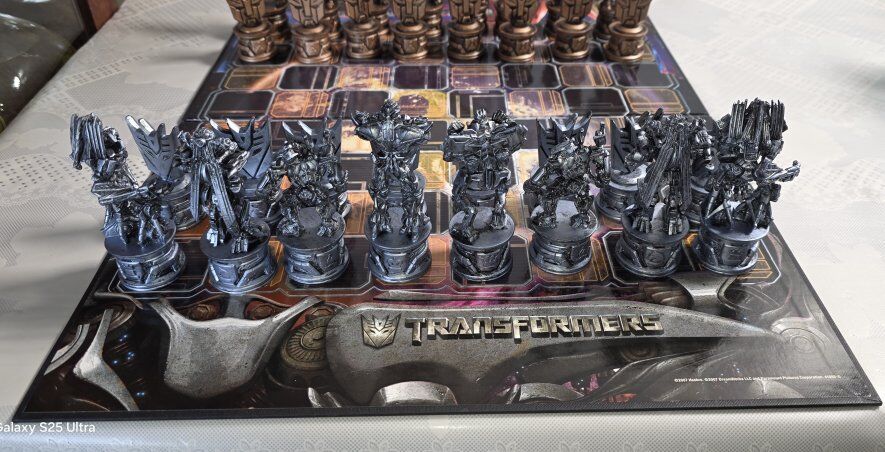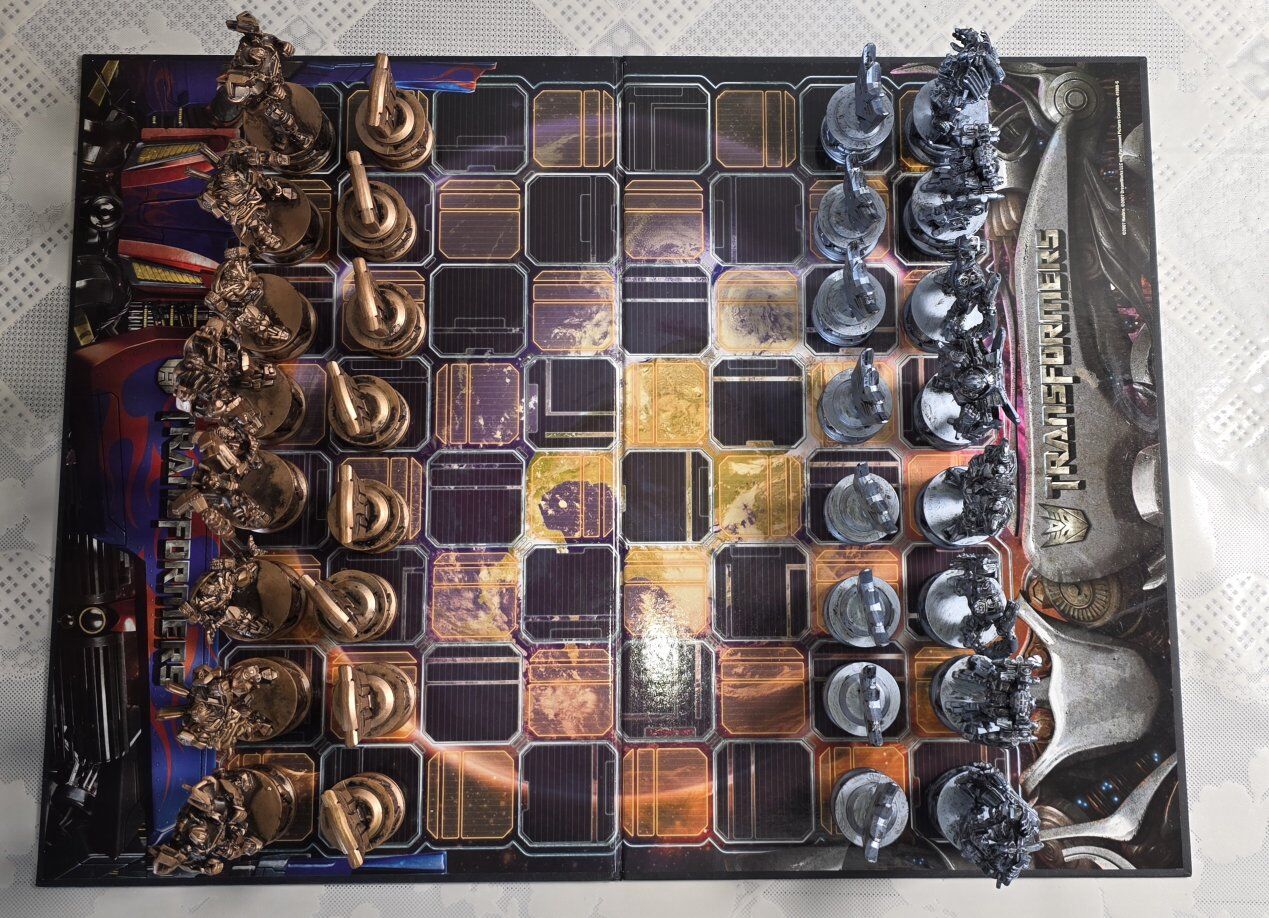 This Pre-Owned TransFormers Chess Set 2007 by Parker Brothers. Complete, box is damage, rest are excellent. Is a unique and collectible game that combines the popular Transformers theme with the strategic gameplay of chess. This plastic chess set features colorful pieces representing various Transformers characters, making it a fun and engaging option for children aged 9 and above. With its creative design and durable material, this product offers a unique twist on the traditional chess game, perfect for fans of both Transformers and chess alike. See all photos, text message is better, see my other adds, thank you.