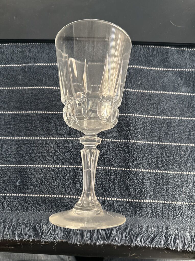 11 piece vintage pressed glass wine goblets with faceted bowl.