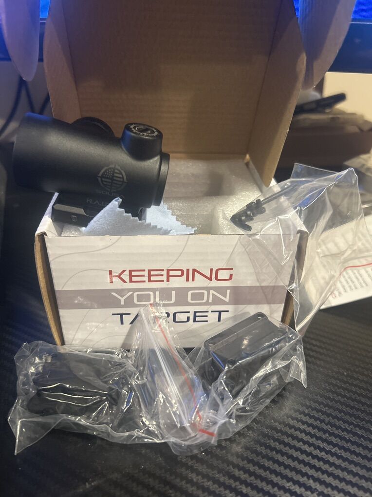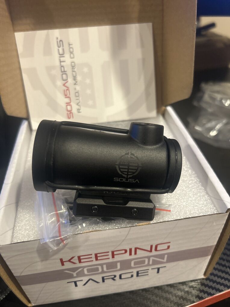 VenmoA brand new never used Sousa Optics RAID red dot. I’ve only opened it to take the pictures to sell it. With a battery unused and ready to use. Including 2 different mount adapters, screws, allan wrench and glass cleaning cloth.