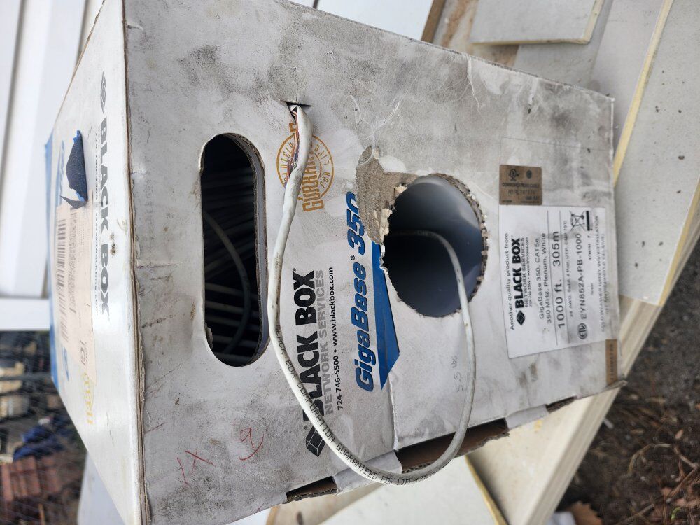 CAT5e cable lot. Gigabase 350. 24 awg solid 4 pair. Brand new box holds 1000' and weighs 22.2 lbs. 5 boxes total price is for all not per unit. Box 1 weight 8.3 lbs approx 330' Box 2 weight 7 lbs approx 270' Box 3 weight 5.5 lbs approx 210' Box 4 weight 14.3 lbs approx 620' Box 5 weight 5 lbs approx 170' total length approx 1600' price is obo text or call is best