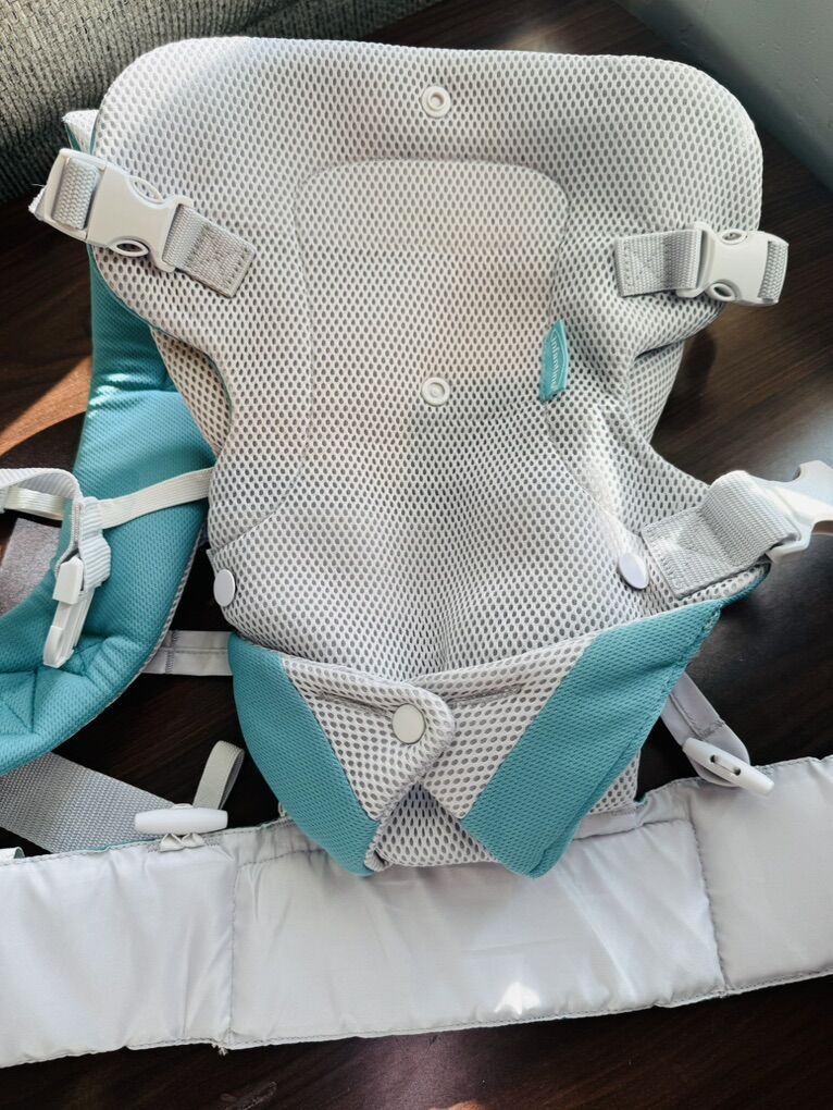 PayPalInfantino Flip 4-in-1 Light & Airy Convertible Baby Carrier in excellent condition. Features breathable mesh fabric, adjustable padded shoulder straps, and a supportive waist belt for comfort.