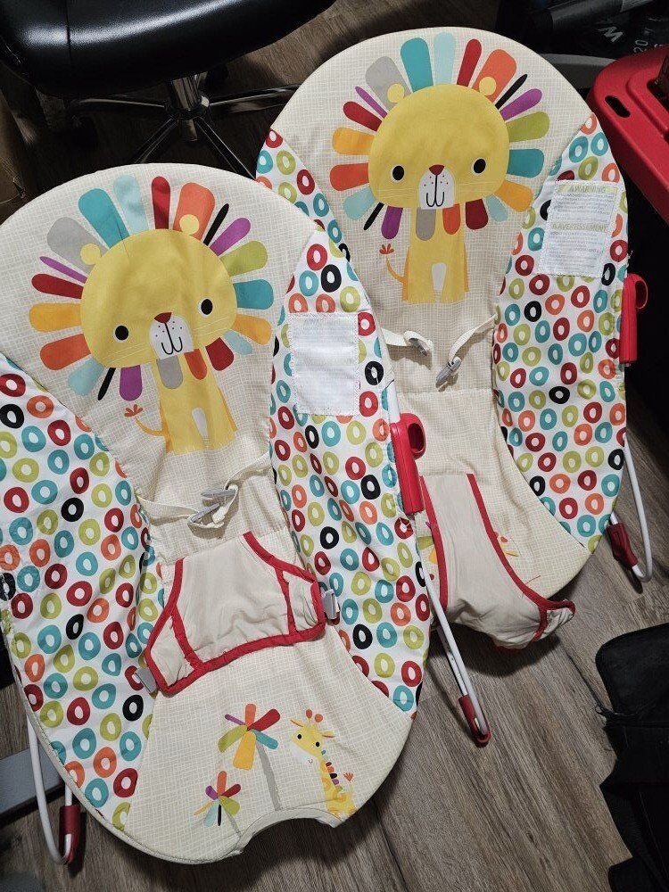 VenmoTwo baby bouncers well loved but still in great condition. There's a few snags on one from the wash, but it still works fine. They come with a vibrating piece (not pictured) that will be included. $10 for both or $5 for one (obo). No deliveries. Thanks!