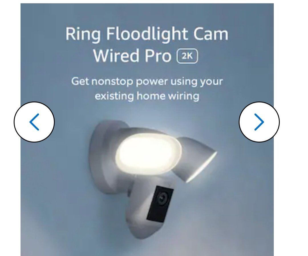 Ring Floodlight Cam Pro with 2K Video and Ring Vision, 2 LED Lights, Dual Band Wi-Fi, and 3D Motion Detection, White