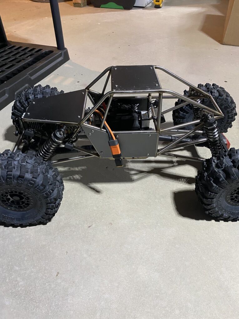 Scx6 with a rc speedy cage and gray powder coated panels Powerhobby 1513mg direct power servo 3s/4s Beadlocks wheels Proline Baja proX tires with printed inserts Samix front diff brass with added internal brass Mytrick spotlights front and rear