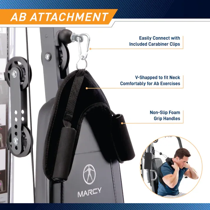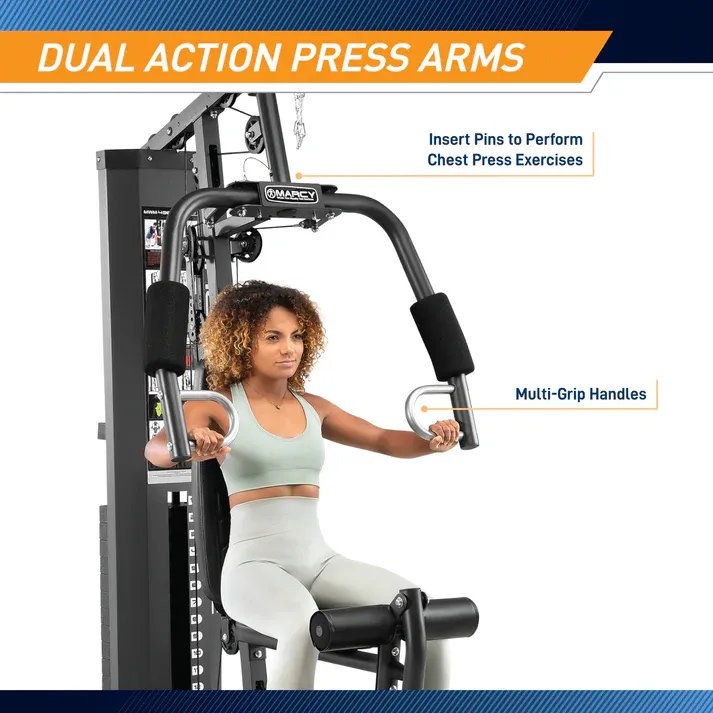 Dual-action press arms allow for chest press and vertical butterfly exercises Target your core with the ab attachment. Control resistance by adjusting the selectorized Weight Stack Work your lower body muscles with the total leg developer. Foam roller pads allow for a comfortable workout