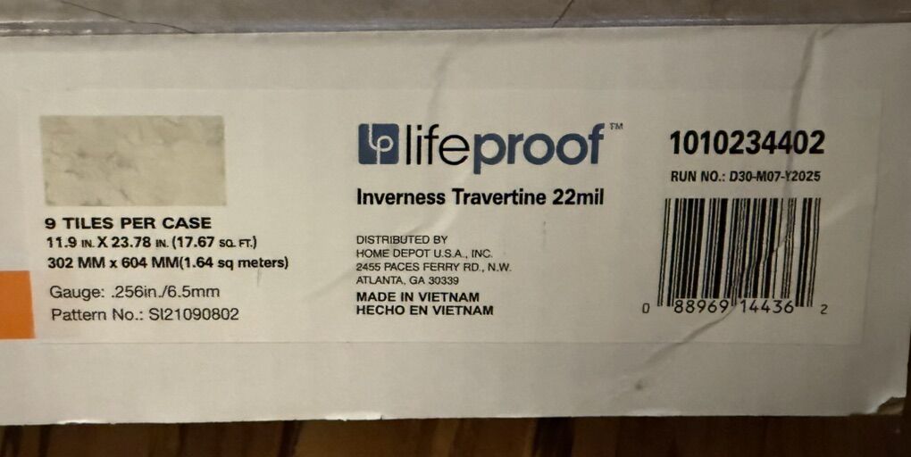 PayPal5 of 9 pieces. Rigid core vinyl tile flooring Lifeproof brand purchased at Home Depot. Color / Pattern is Inverness Travertine Full box cost is $58. Depending on location may be able to deliver