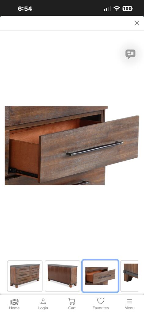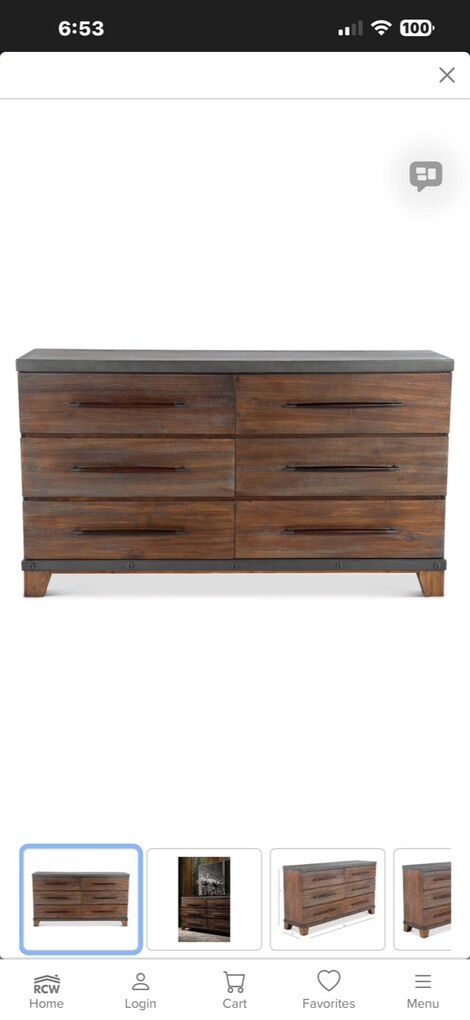 ApplePayBeautiful, very solid matching bedroom set from RC Willey’s Forge collection. Modern rustic style with a rich rustic ash brown wood tone, sleek hardware, and faux concrete tops on the case pieces for a high-end look.
