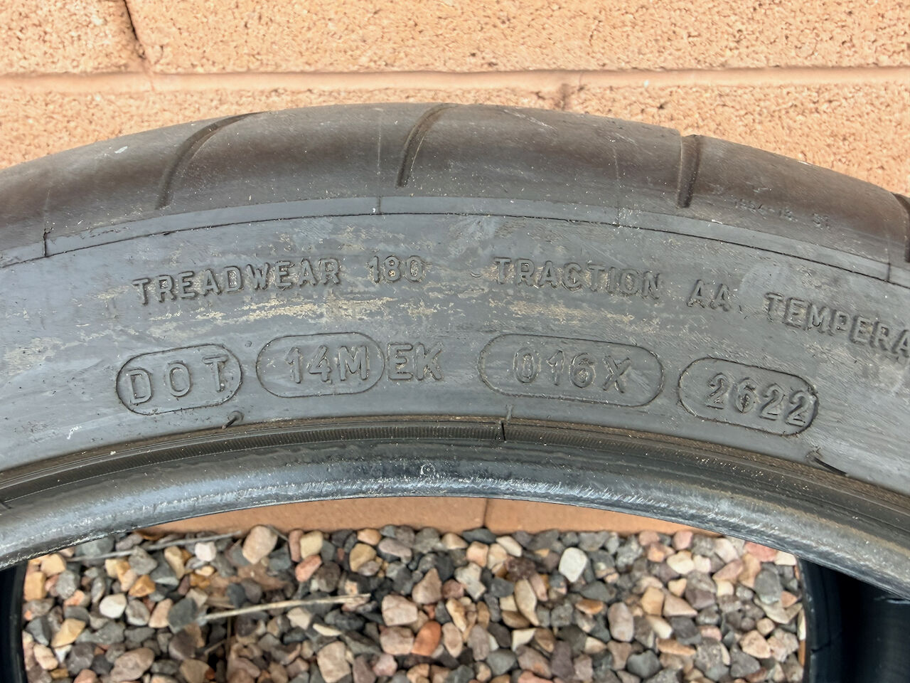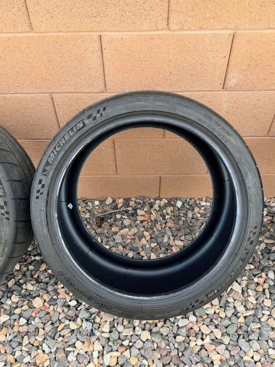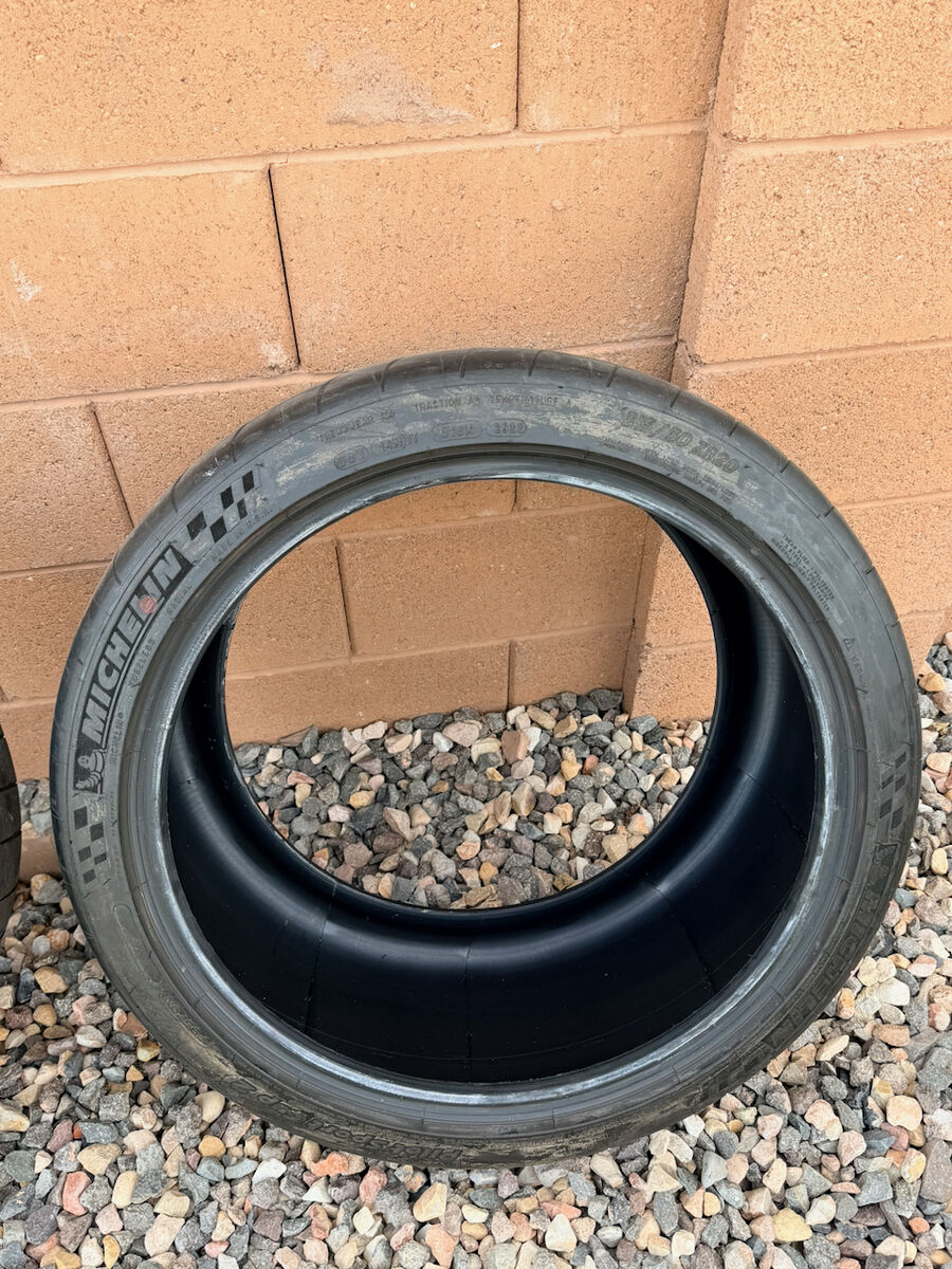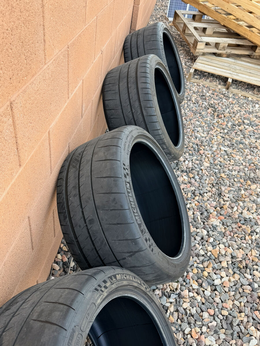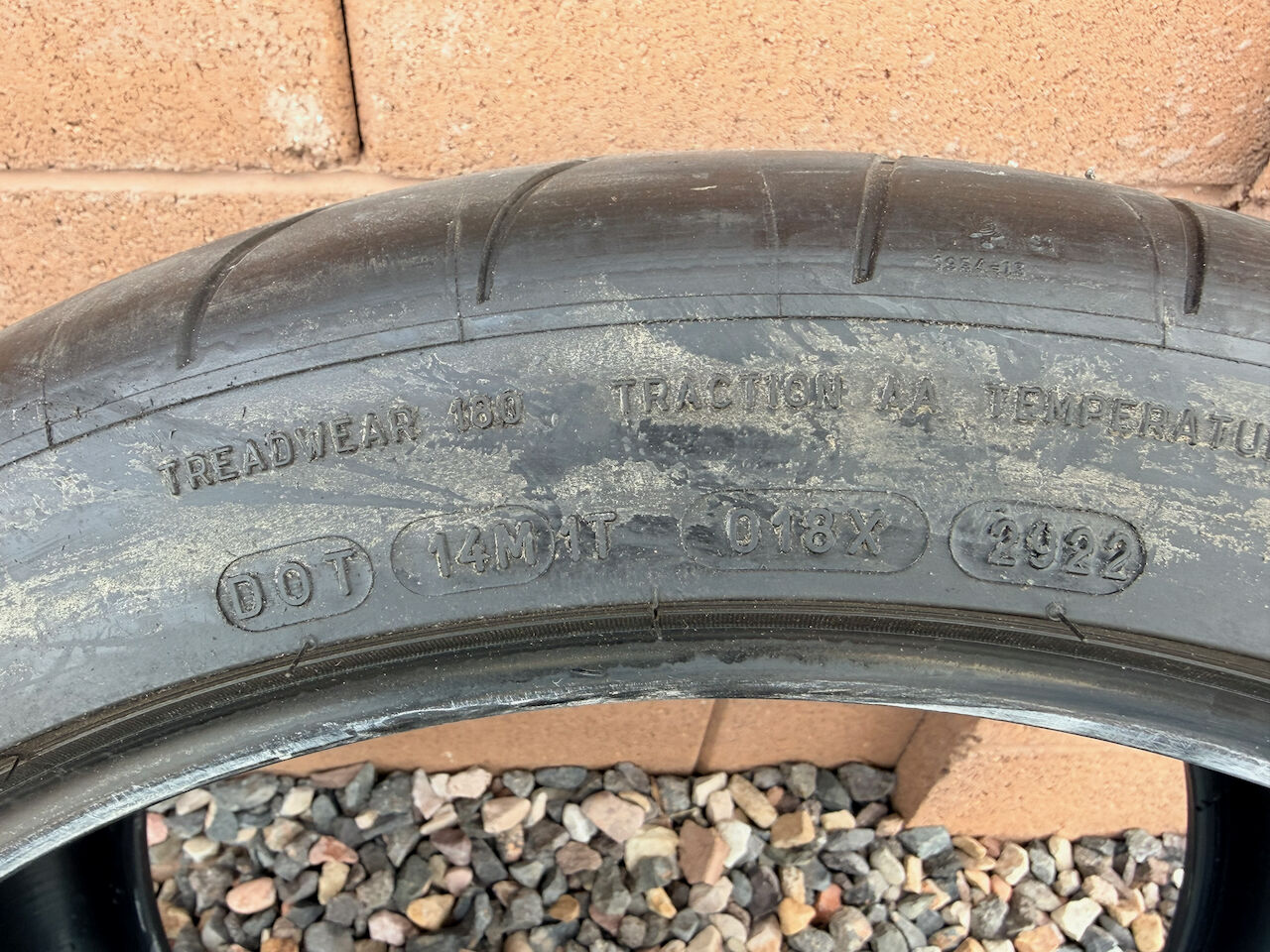 These are a set of Michelin Pilot Sport Cup 2 tires removed from my GT500 CFTP car with approx 350 miles on them. They have a 26 week of 2022 date code on them.