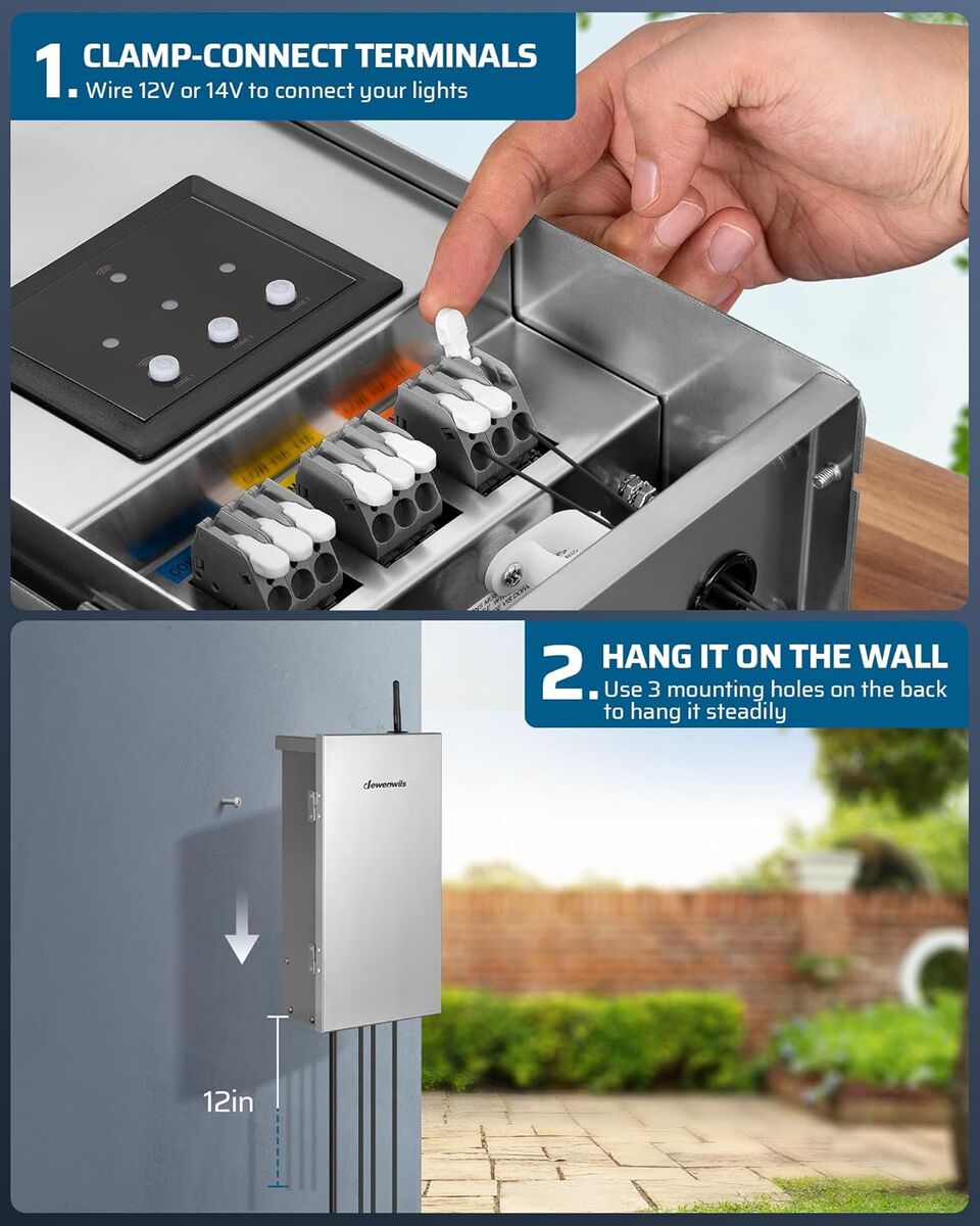 About this item - [APP & Voice Control] Effortlessly manage your landscape light transformer with DEWENWILS APP; utilize Alexa and Google Assistant for automated lighting via smartphone or voice commands; No hub needed (supports 2.4GHz only)