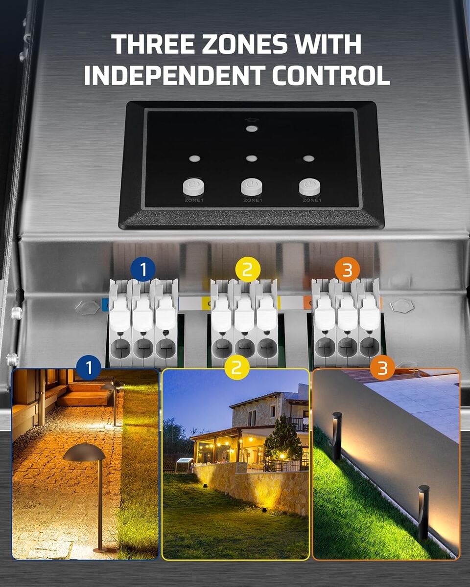 ApplePayDEWENWILS 300W Wi-Fi Low Voltage Landscape Transformer with 3 Zones, 2.4GHz Smart Low Voltage Transformer, 120V AC to 12V/14V AC, Landscape Lighting Transformer for Outdoor Lights, LED Lights