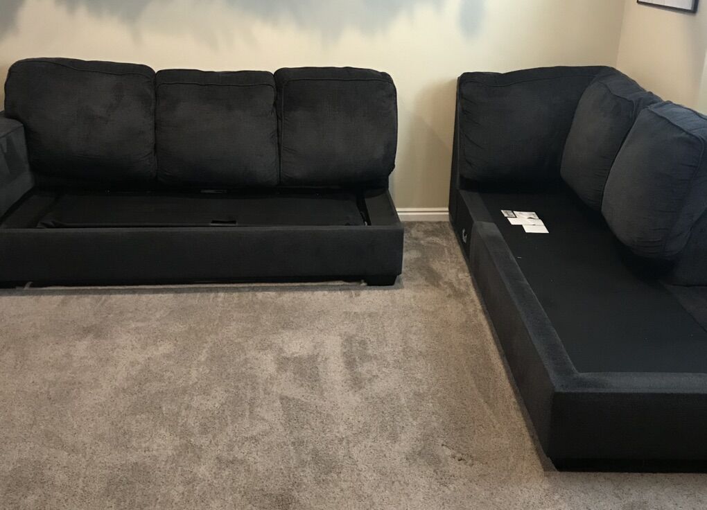 Bought in 2022 Included pull out queen sized bed. Mattress included. Has been cleaned once a month since it was bought. Comes apart in 2 sections for easy move. Message for measurements Last 2 photos is the damage of small hole from our dog. He’s hypoallergenic.