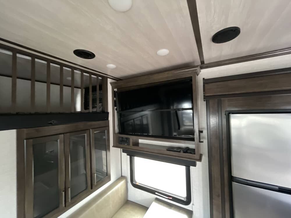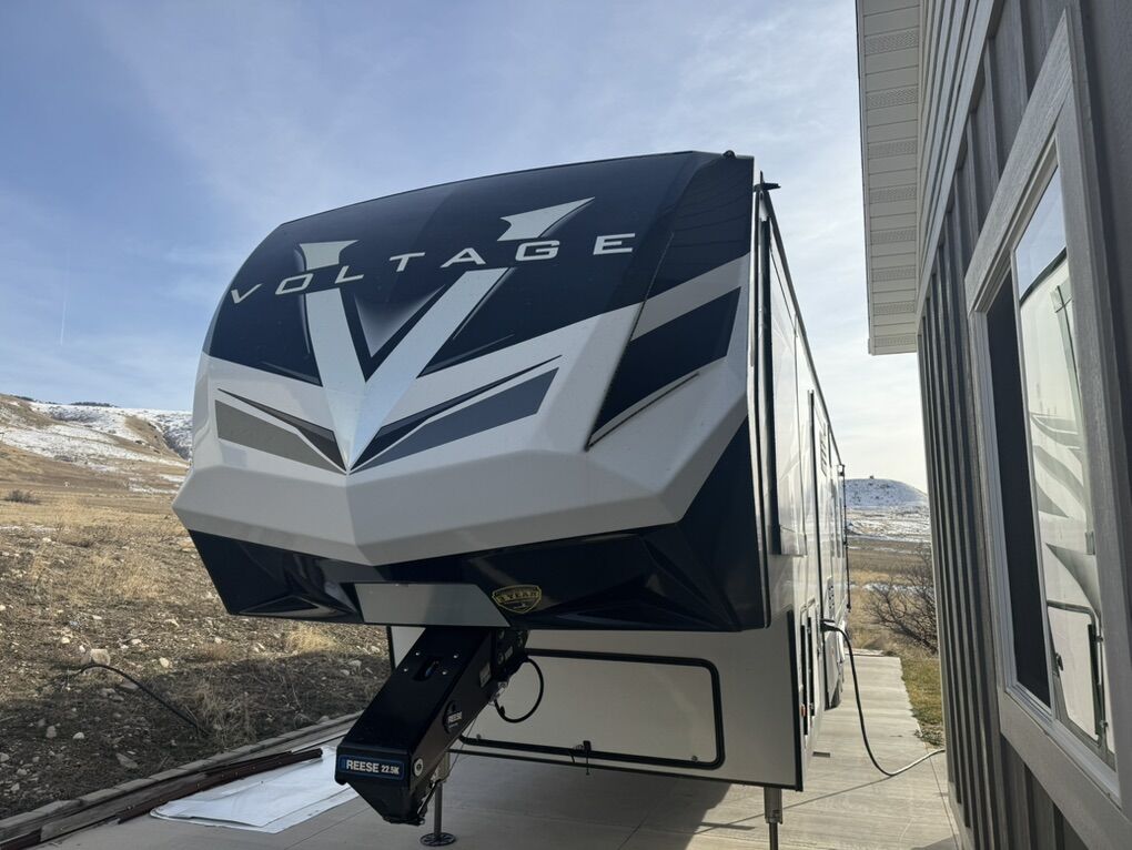 2022 Dutchman Voltage 4135 with hard to find 18’ separated garage. 200watts of solar. Sleeps 11+ in 5 queen beds and one twin loft. 6 couches, 3 tv’s. Upgrades include full drop hitch for double towing, and Reese Goose Box, ramp door glass door patio package with guard rails and stairs, brand new tires N rated, new batteries, and trailer tire monitoring of PSI and temperature among other things. Well over $6k in upgrades. Text 801-301-7710