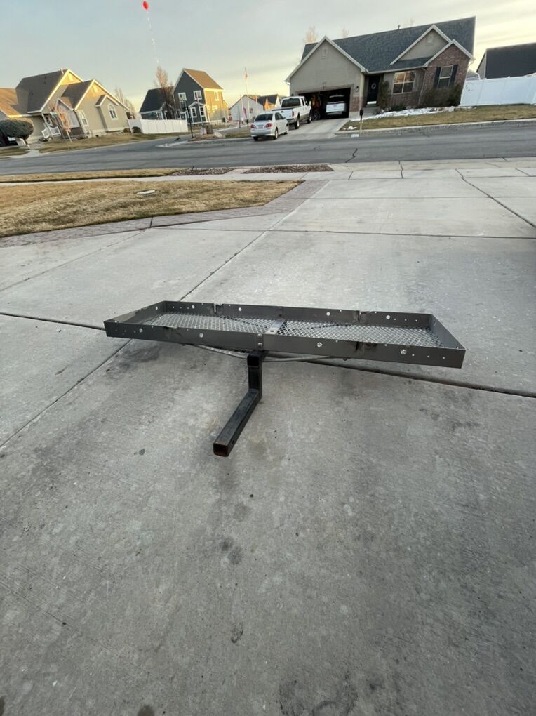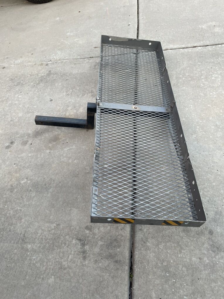 VenmoThis cargo rack sports a lifted stance so your items are further away from the road. Dimensions are 19 1-2 inches x 5 feet. Lightweight yet strong.