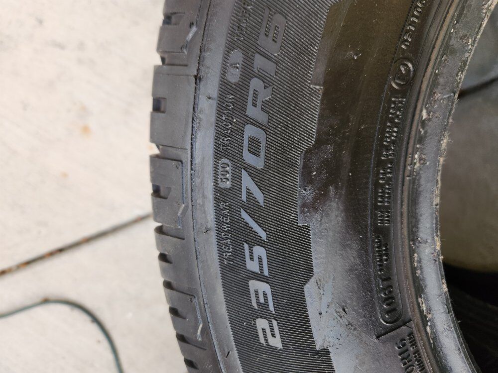 VenmoMastercraft Stratus, 235/70RS16 M+S. Four newer/slightly used tires with less than 500 miles on them. The tires outlasted our 2006 Mazda Tribute! Originally paid $800.