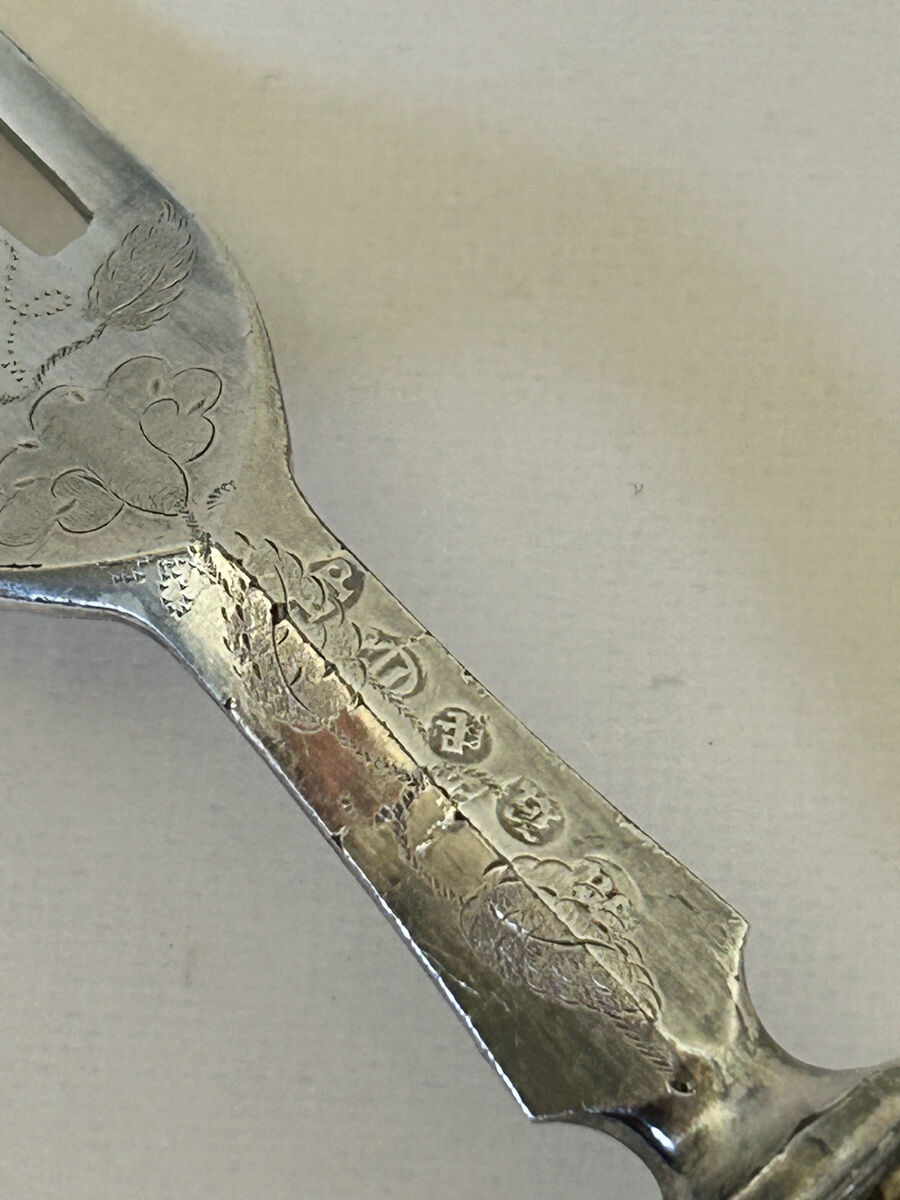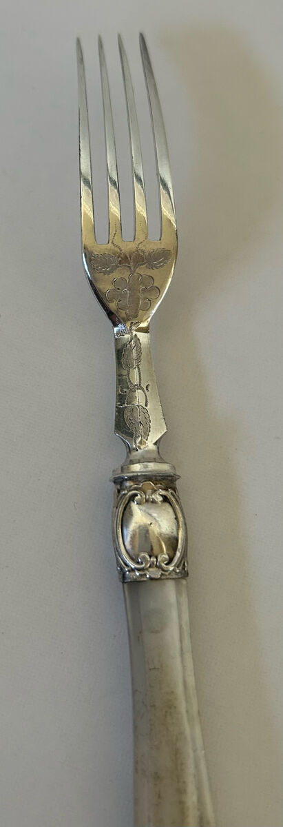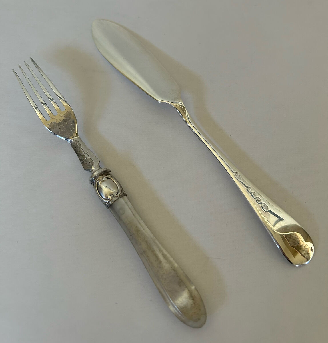 VenmoVintage Silver Plate Dessert Fork and Silver Plate Butter Knife/Spreader. Silver Plate Dessert fork beautifully eched on both sides of fork with mother of pearl handle. Silversmiths markings on front neck of fork are obscured by etching. Measures 6.75" long. Silver Plate Butter Knife/Spreader also etched and stamped by British silversmiths Cooper Brothers & Sons on back. Measures 7.5" long. All items are identified and described to the best of the sellers ability - no expertise is claimed. Minor age issues are to be expected....any major issues will be mentioned in body of ad.