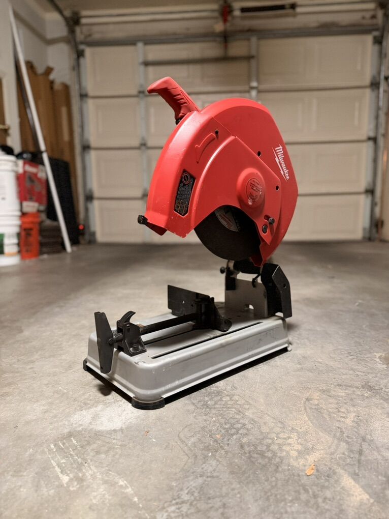 ApplePayMilwaukee metal chop saw or abrasive cut off machine. 14 inch blade. 120v Used it maybe 3 times. Too bulky to have on the work truck. Bought it 2 months ago. 279$ brand new Asking 200$ text works best.