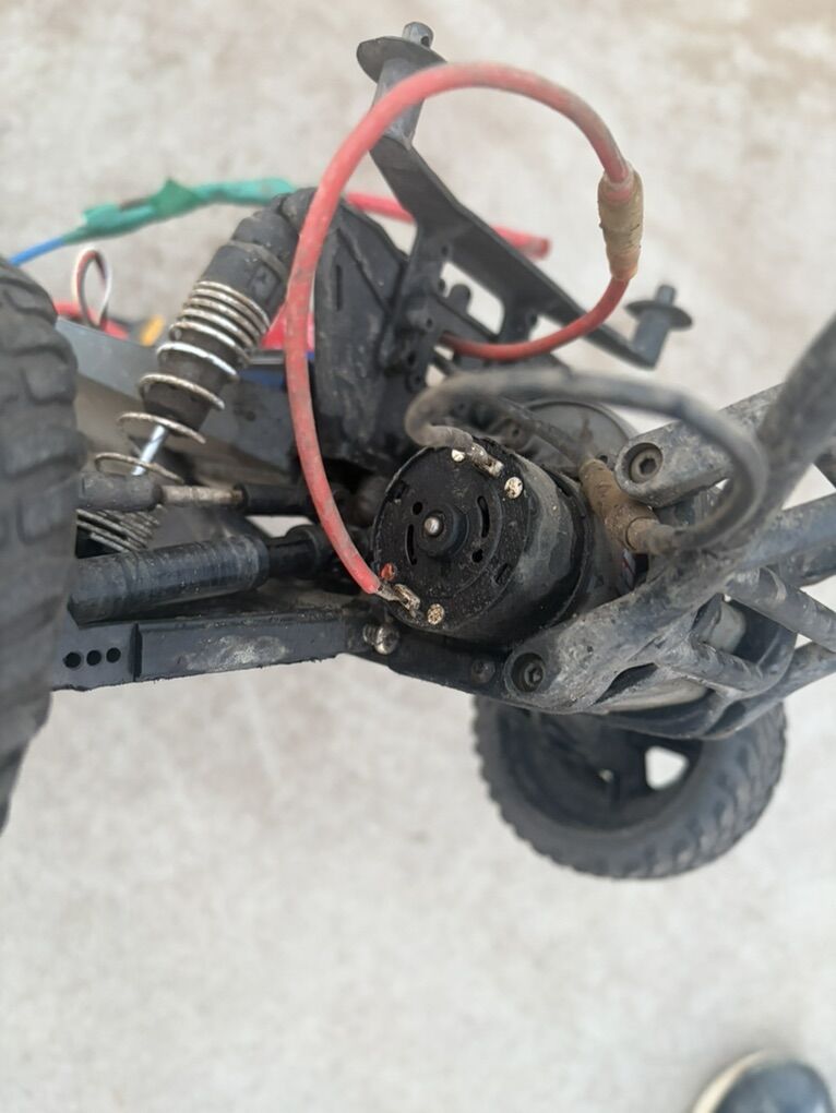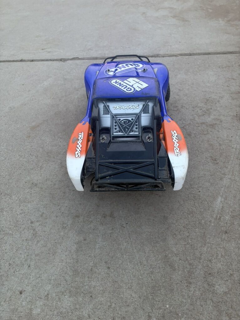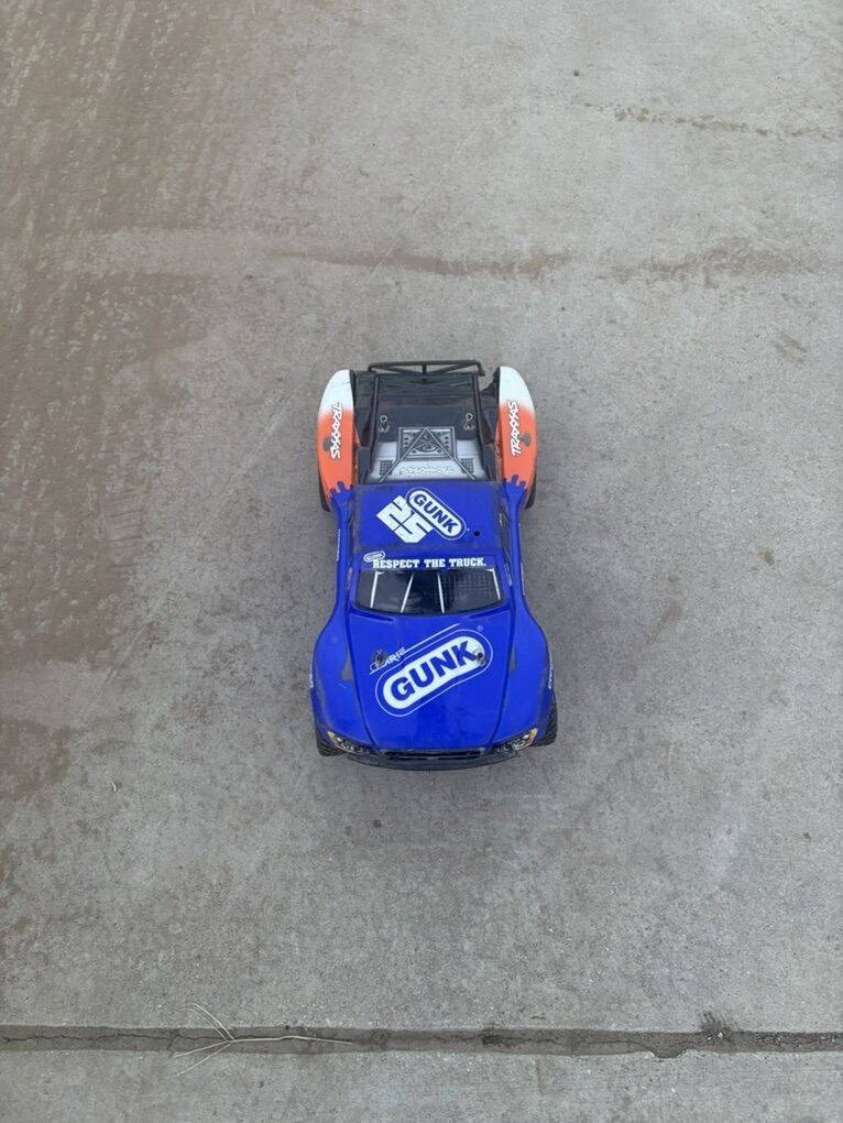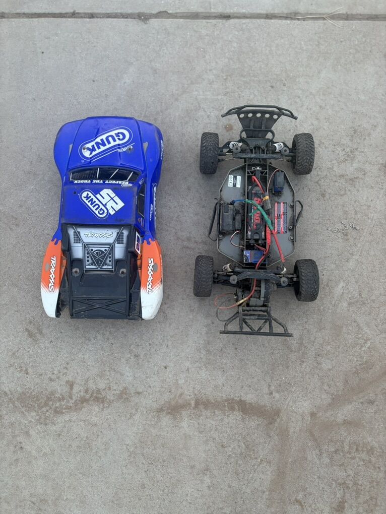 This is a used Slash I’ve had lots of fun with and it still has a lot of life left. It has an upgraded motor, front and rear suspension arms. I’m including extra Rear suspension arm arms, paddle wheels for water, sand or snow, new wheels that haven’t been used, a racer’s edge ultra 50 professional. It charges LiPo, LiFe and Ni-Mh batteries, it also includes the higher gear ratio, and at least 80 extra pins for the battery mounts and the body.
