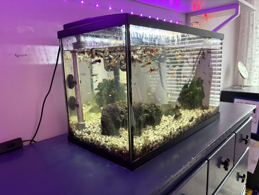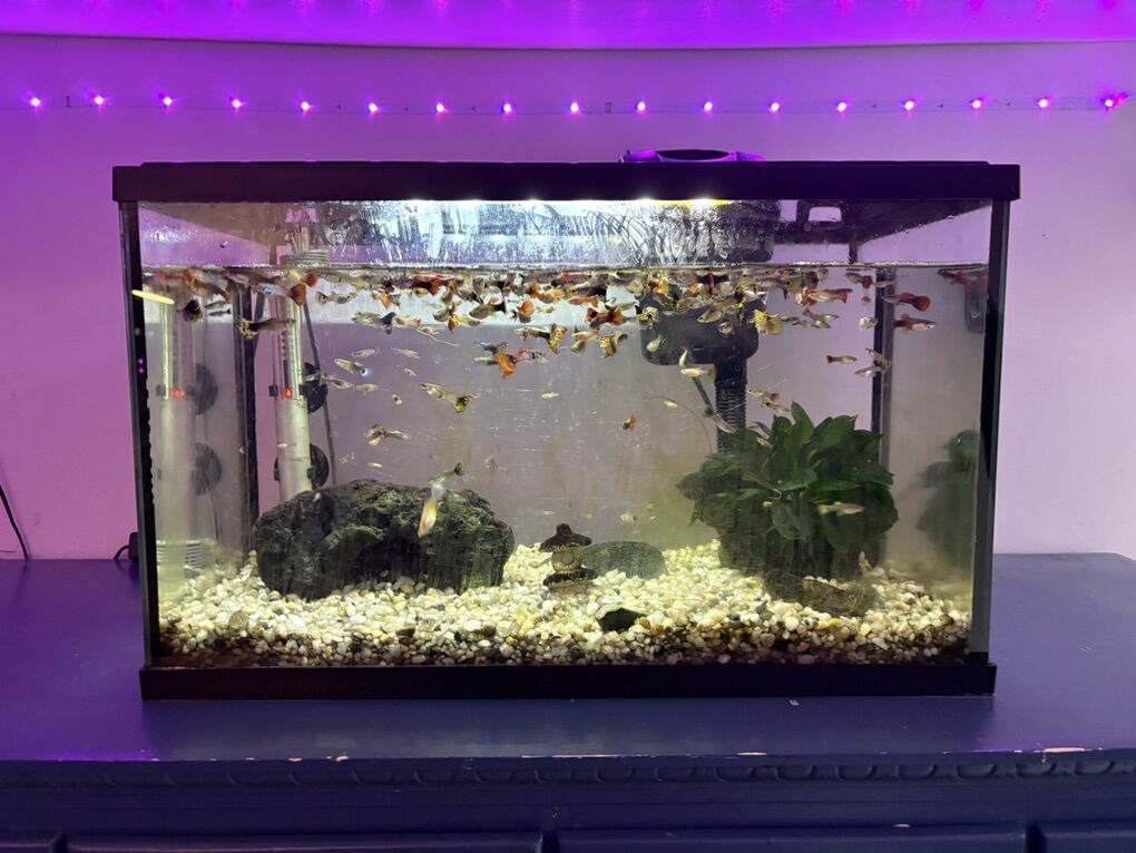 VenmoFish tank and over 100 guppies $200 10 gallon Water filter Water heater Rocks Water cleaner Fish food