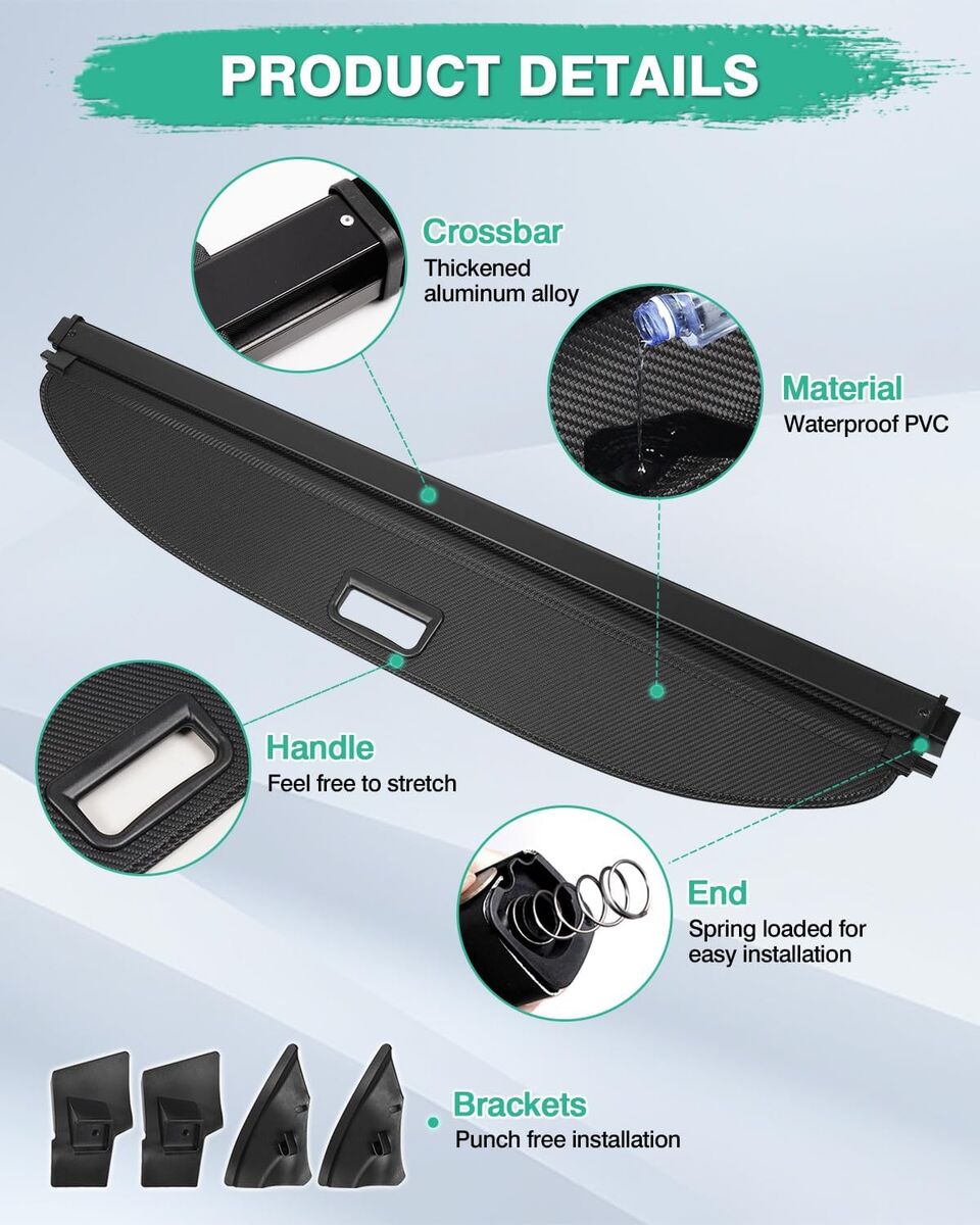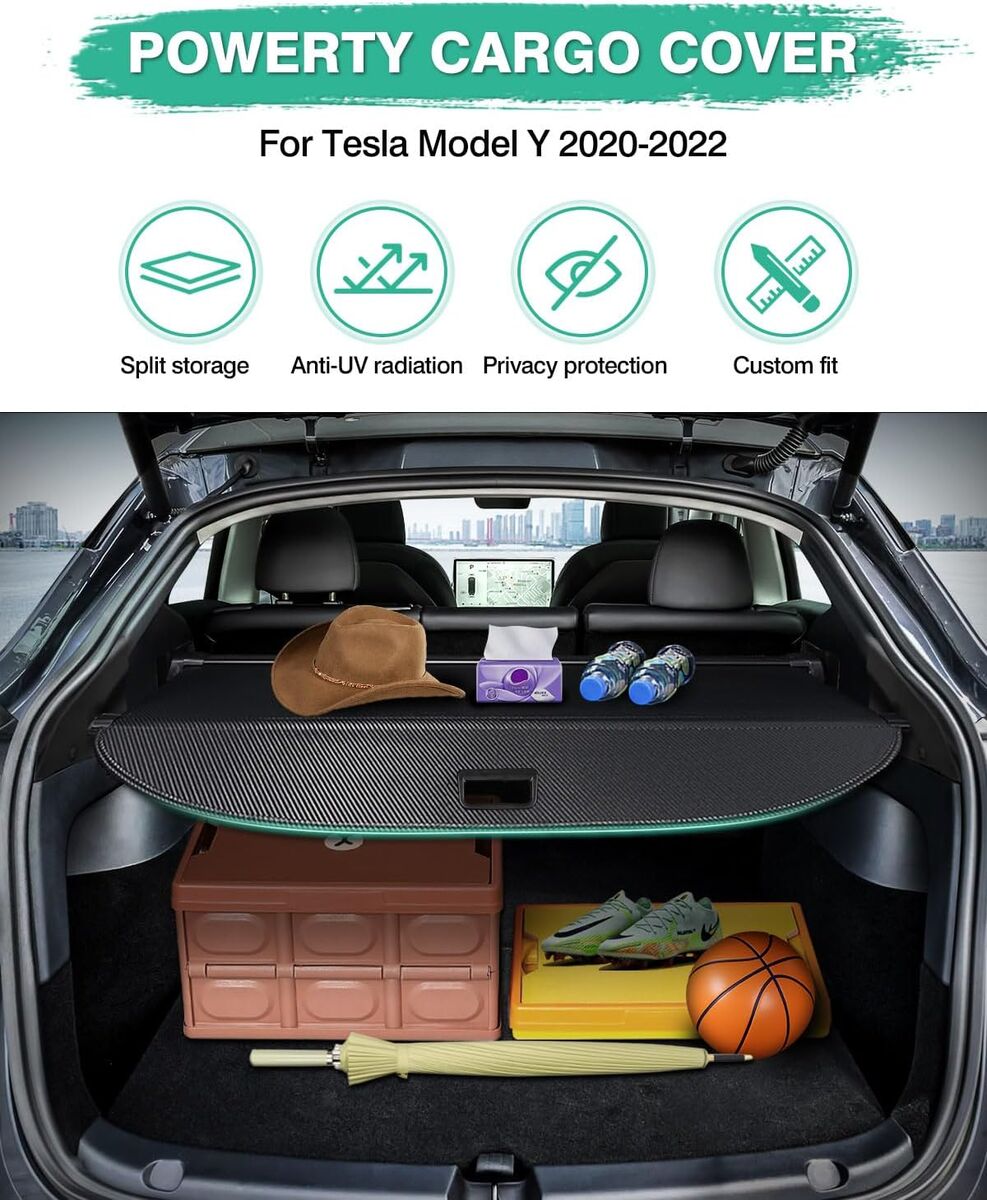 ApplePayPowerty Retractable Trunk Cover for 2020 2021 Tesla Model Y 5-Seaters (Not for 7-Seaters), Retractable Trunk Cover Privacy Cover Truck Replacement for 2020 2021 Model Y Accessories (Canvas Texture)