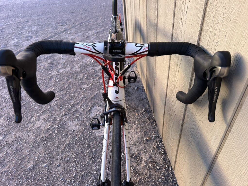 Awesome bike in awesome shape except scratches from a dropped chain with previous owner. Zipp’s Firecrest Showstopper wheels, Fizik 3d saddle, Dura-Ace 167.5 crankset, and Look Carbon 42cm bar, along with Ultegra shifters/derailleurs, this is a premium setup. If you don’t want the wheels the price is much different.
