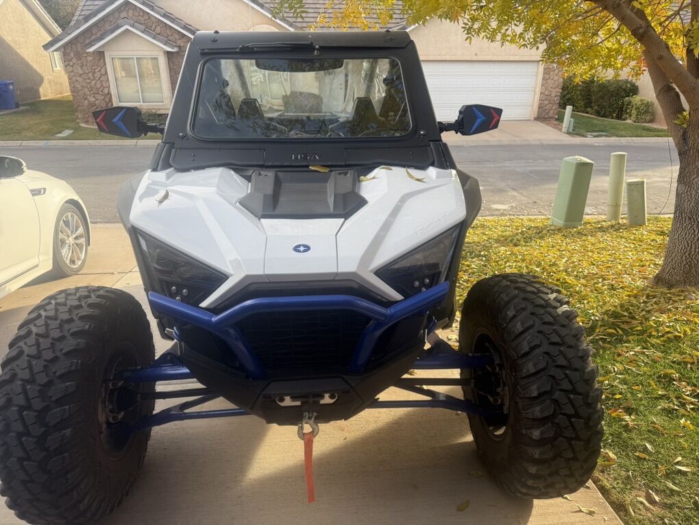 ACCESSORIES Winch with hardwire control As well as remote controll Windshield & rear window Hard top Inner door panels side windows with zippers Full safety harness seat belts G&H dirt particle separator Large rear tool & storage Smaller storage box Front bumper Rear bumper Rock sliders Full aluminum skid plate Bead lock wheels 32”X10” Tires Street legal Fire extinguisher Garage cover weather proof