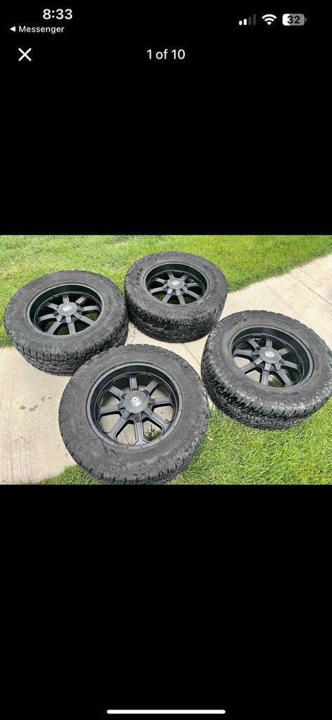 ApplePayLooking to trade my wheels for something else. These are 20x9” 6x135 Lug pattern They are currently on my F-150. They are wrapped in 35x12.50 Toyo Open Country A/T load range F Still have some tread. Last photo shows them on my F-150 I’m looking to trade for some 17’s or 18’s. Tires don’t necessarily have to be great since these don’t have much life left too. Open to stocks on 35’s or just smaller wheels on 35’s. Might considering selling if interested.