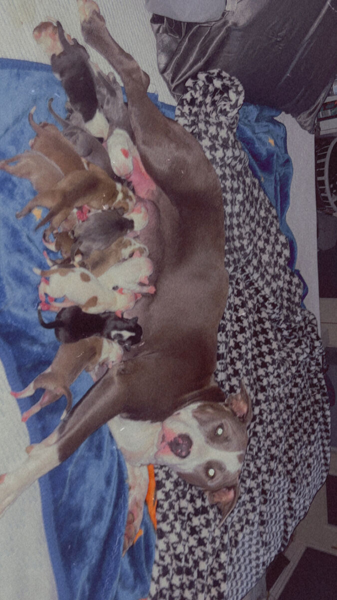 Both parents are American Bully dogs. These puppies are expected to grow into large, strong, affectionate companions. They are American Bully Puppies (XL influenced), born 11/28/2025, and already incredibly affectionate, playful, and people-loving.