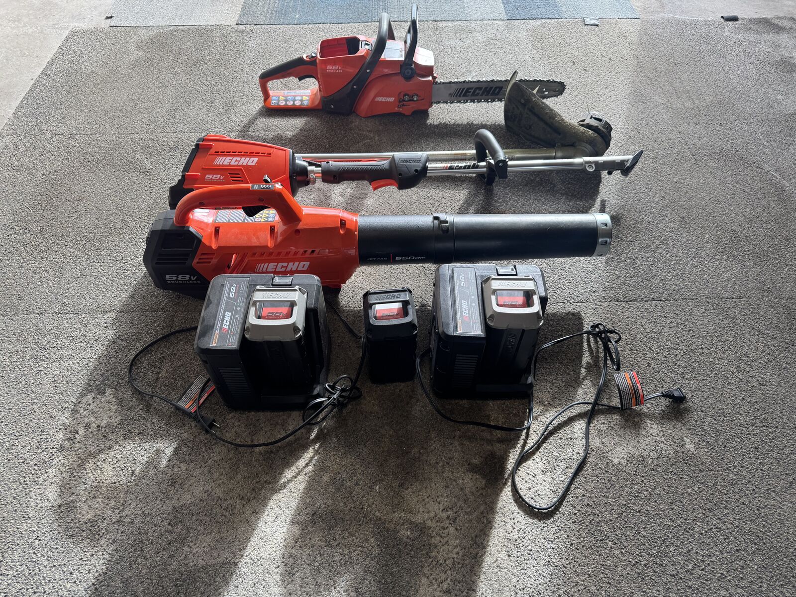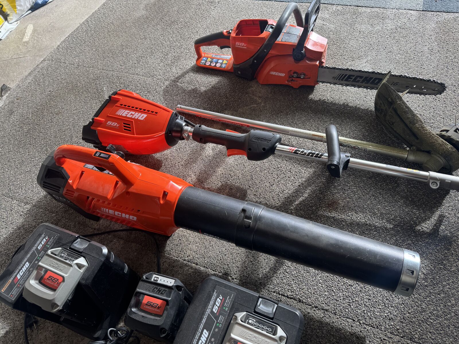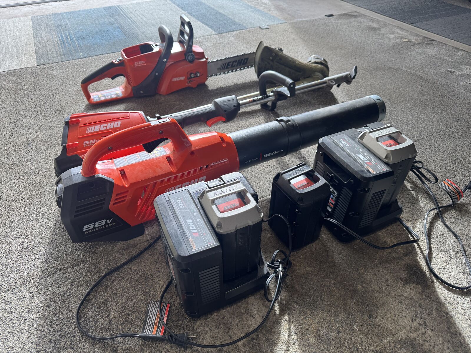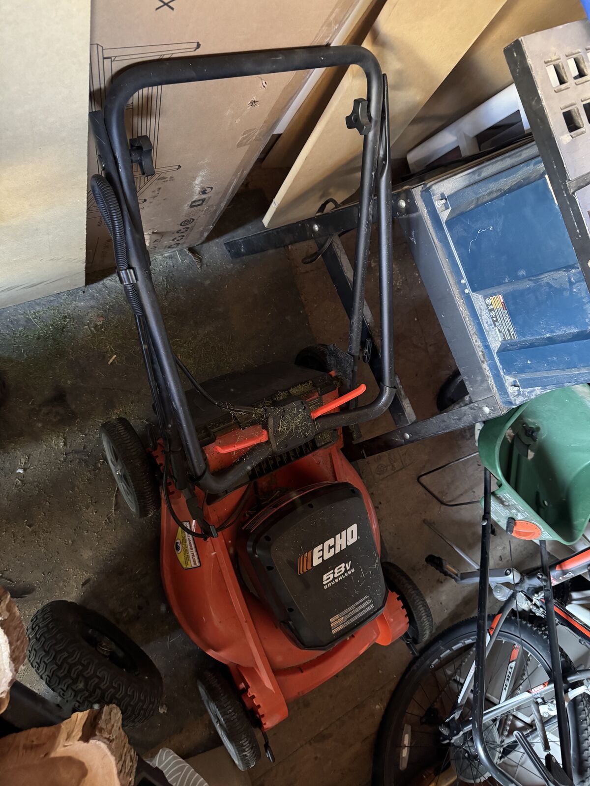 ApplePayEcho lawn mower, blower, chain saw, and edger/trimmer. Chain saw needs new chain. Three batter with charger. New: blower-$219, trimmer/edger-$370, chainsaw-$299, mower- $399. Willing to sell individually, but a great deal of you want them all. Make offer, or buy the lot for $600