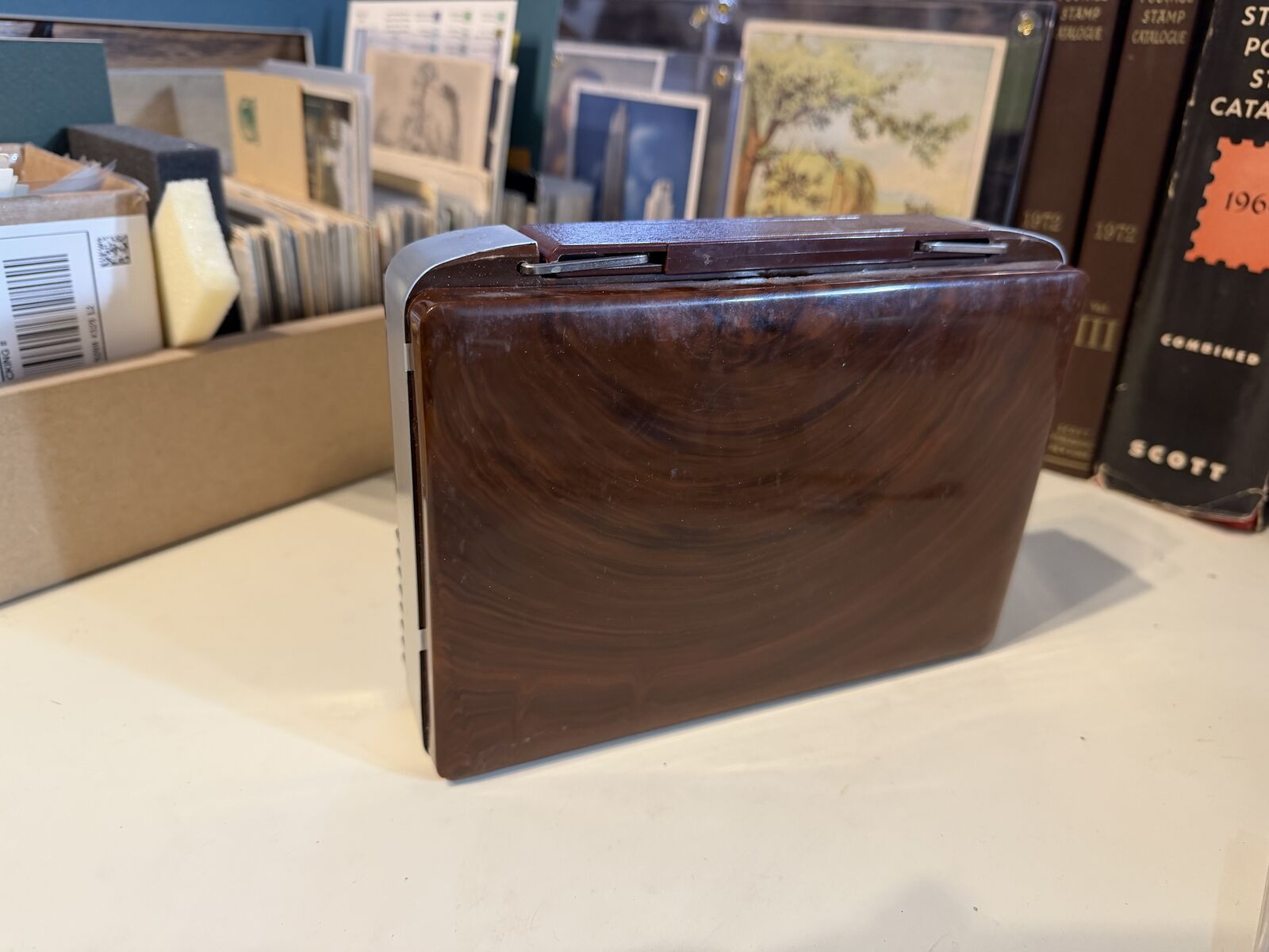 While originally designed as a functional radio, this piece is especially well suited today as decorative mid-century decor, a collector display, or a restoration project. Its design-forward silhouette and authentic 1950s presence make it a standout addition to any MCM interior, Atomic-age collection, or vintage electronics display.