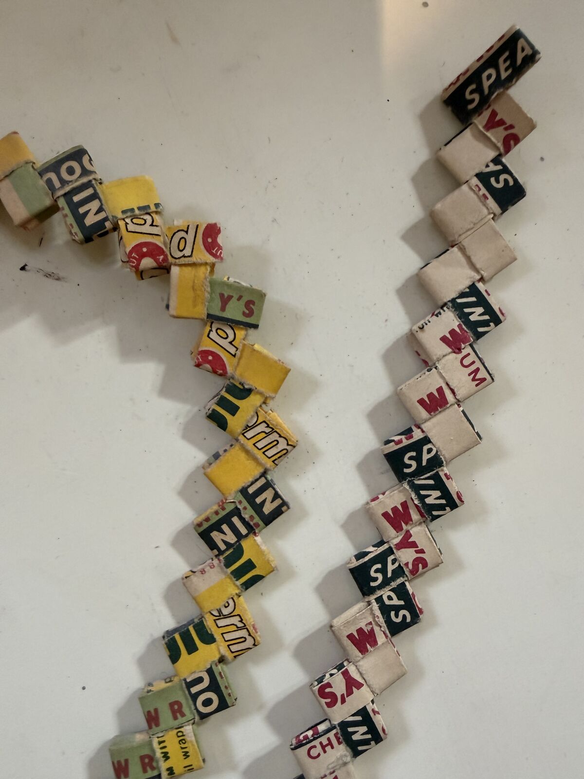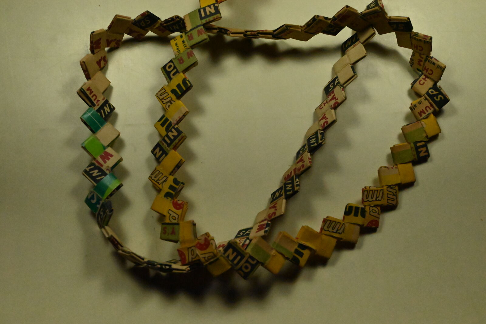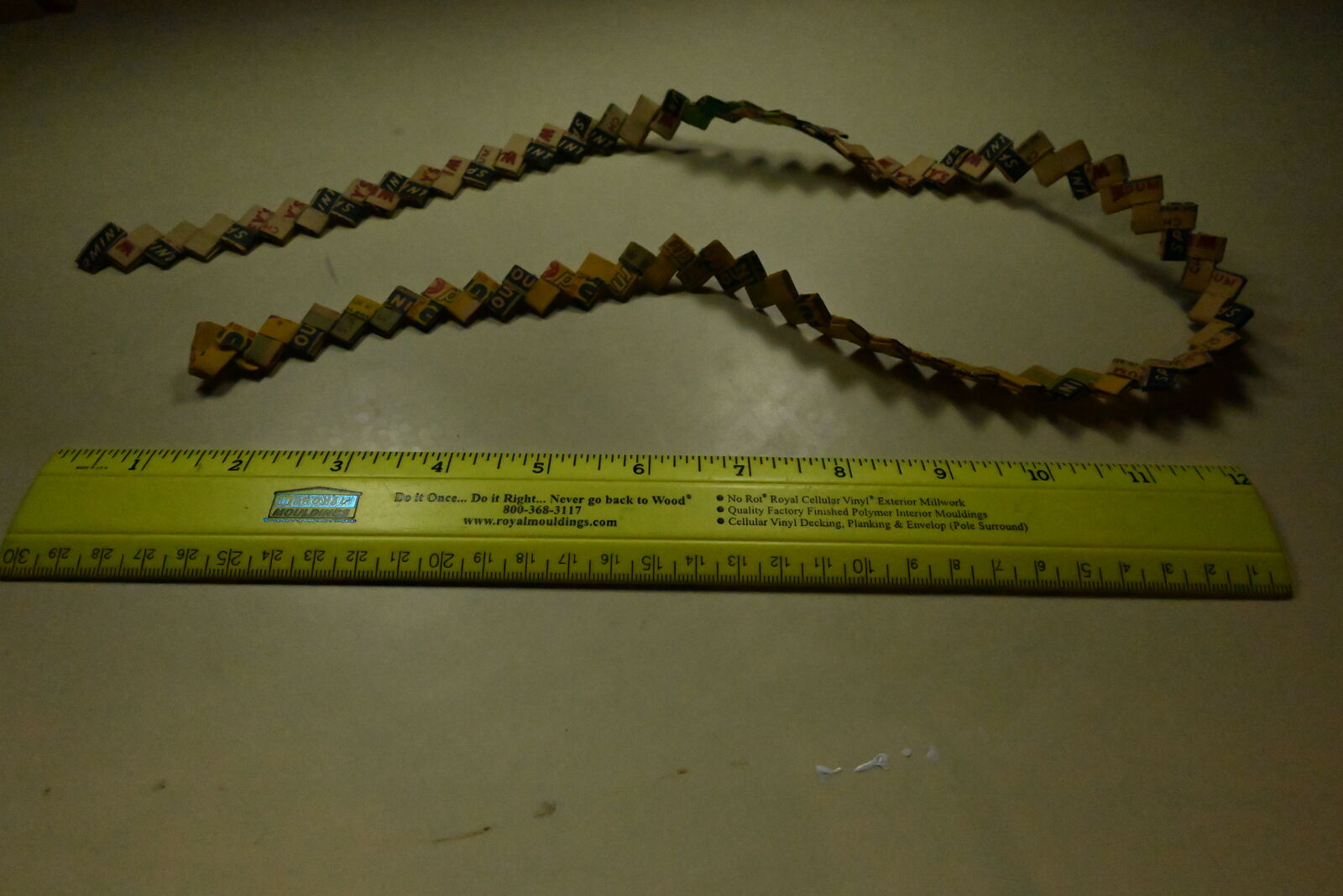 Vintage Gum wrapper Braid from "back in the day" when sticks of gum had wrappers. Here's approximately two feet (2') of handcrafted happiness, when used properly will provide numerous usage oportunities and copious amounts of joy.