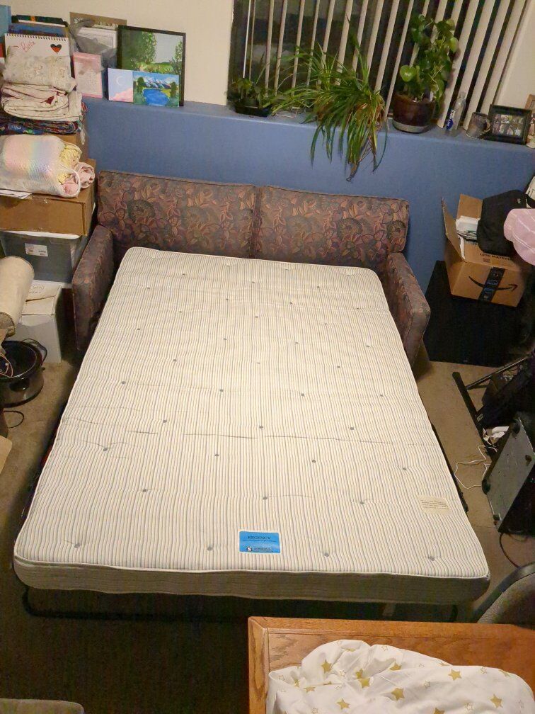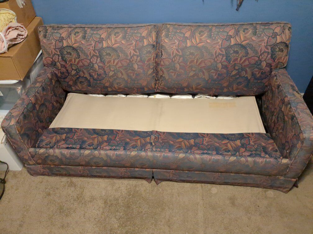 VenmoDouble-size sleeper sofa in good condition. Pull-out is easy and the mattress is reasonably comfortable for a sleeper. It is clean, no stains, from a smoke-free home so doesn't smell bad. Previous owners had dogs that did lay on it. but they cleaned it before selling. It has some slight fraying on one cushion corner. Will include a sheet set.