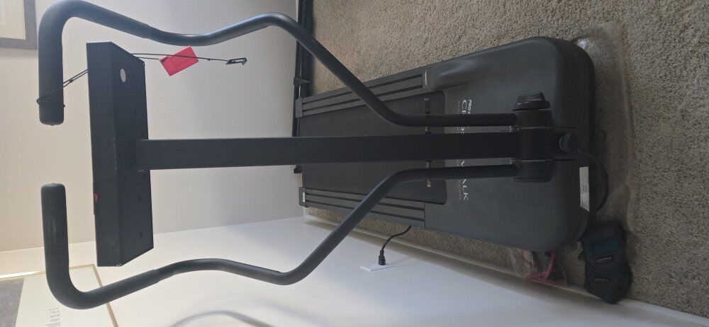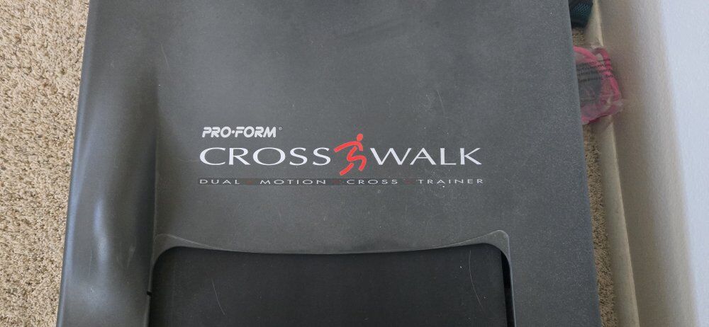 ProForm crosswalk treadmill cross trainer. has incline movable arms works good. must be able to bring somebody and load it yourself. not too heavy for two people pretty easy access out of the house
