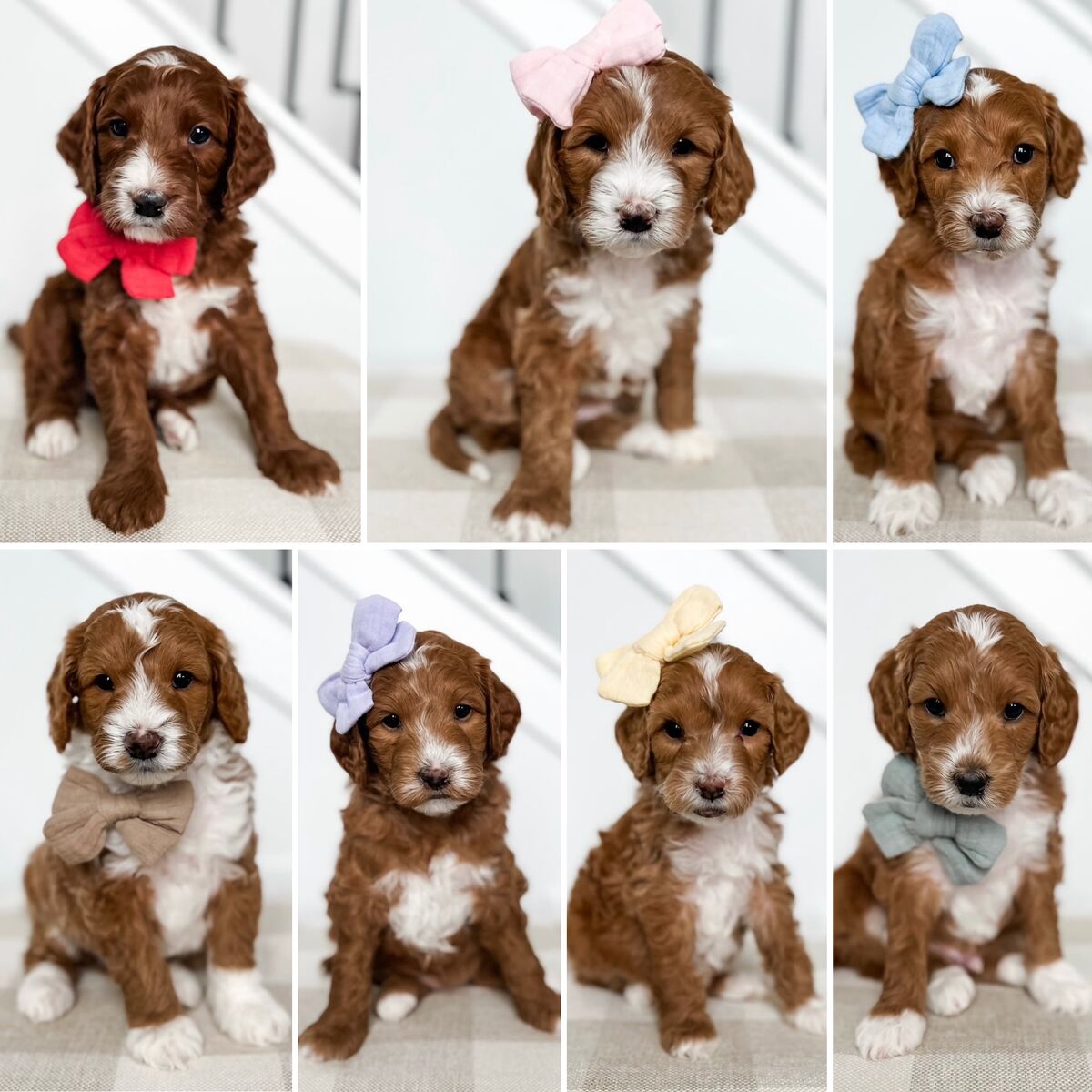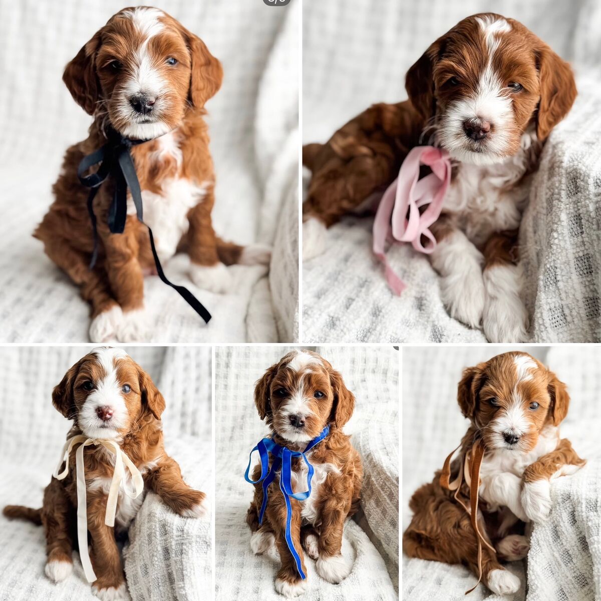ApplePayArtisan Doodles, Duke, is an amazing boy. He is raised with kids, is a great family dog and has a wonderful temperament. He produces really great markings! He has been a main stud in our program. Duke is 18 lbs. FF -/- for coat texture (2 straight curl genes/CC) SS AND Irish Spotting carrier. He won't produce parti puppies. ee KBKB aat BB mm He is clear of all genetic diseases & IVDD/CDDY clear. Testing by Animal Genetics and Embark. OFA's completed/passed. I can have AI done for you at my home if you're local or AI or TCI at South Mountain in Draper, Riverside Pet Care in Saratoga Springs, K9 Fertility in West Jordan, or Utah Reproduction in Provo. I can also ship at dam owners expense. Free re-breed on their next cycle if your girl doesn't take and you do progesterone testing by a vet. Stud fee $1,800. Text to book him 360-798-6653 Pictures of some of his puppies are above, will provide his testing upon request :)