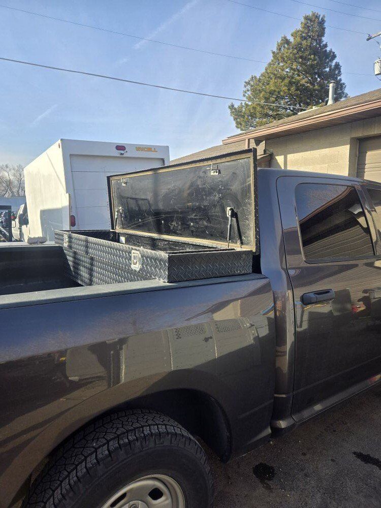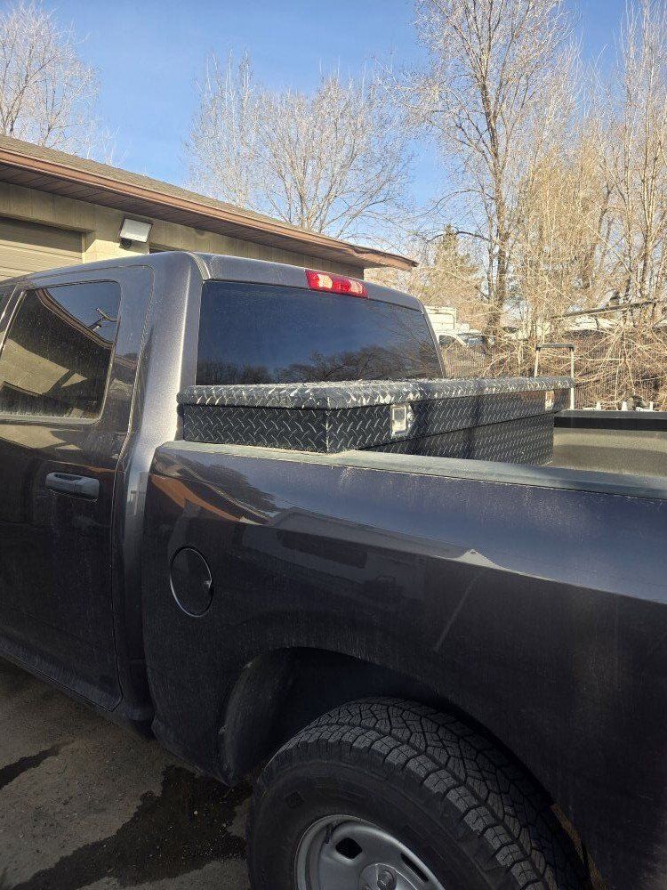 This truck box is in great condition. No keys. The paint on the top is peeling. It was in a full size Ram 1500.