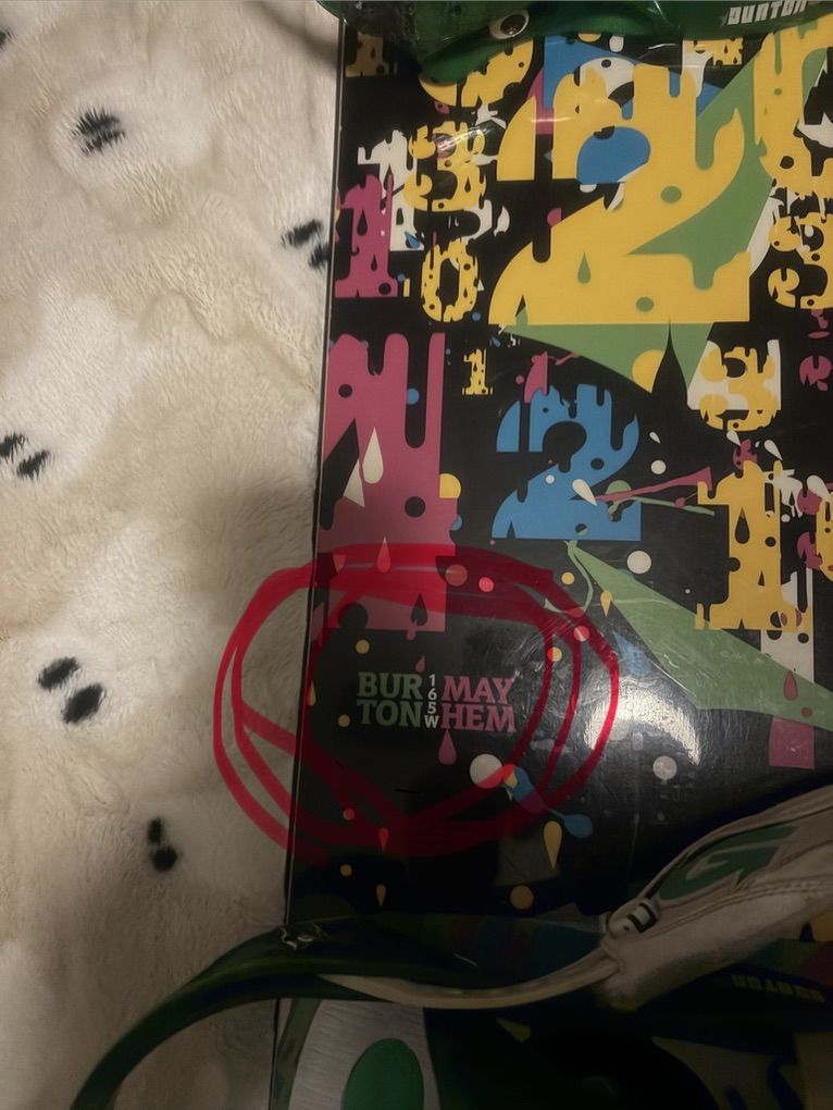 GooglePay Burton snowboard size 165 mm with Burton cartel bindings. Rides great. If you need a board and just wanna go snowboarding, this is all you need. I also have boots if you’re interested for a little extra, they are size 13. for 50 more dollars. I also have a Burton snowboarding, jacket and pants that zip together for another 50 bucks I also have snowboarding goggles that are electric with a fan so that they can get rid of any moisture inside your goggles for another 50 bucks. For another 10 bucks. I have some gloves that are pretty good.