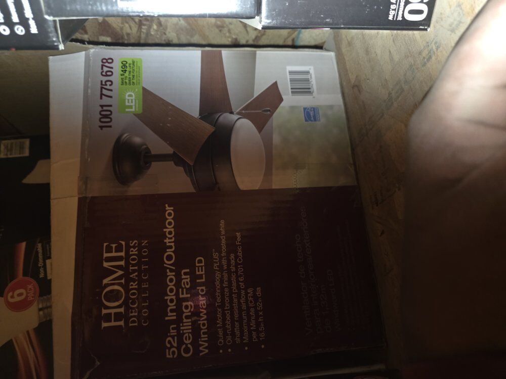 VenmoBrand new in the box Home Decorators 52 " Windward ceiling fan w/light. More info in photos. Asking $100obo