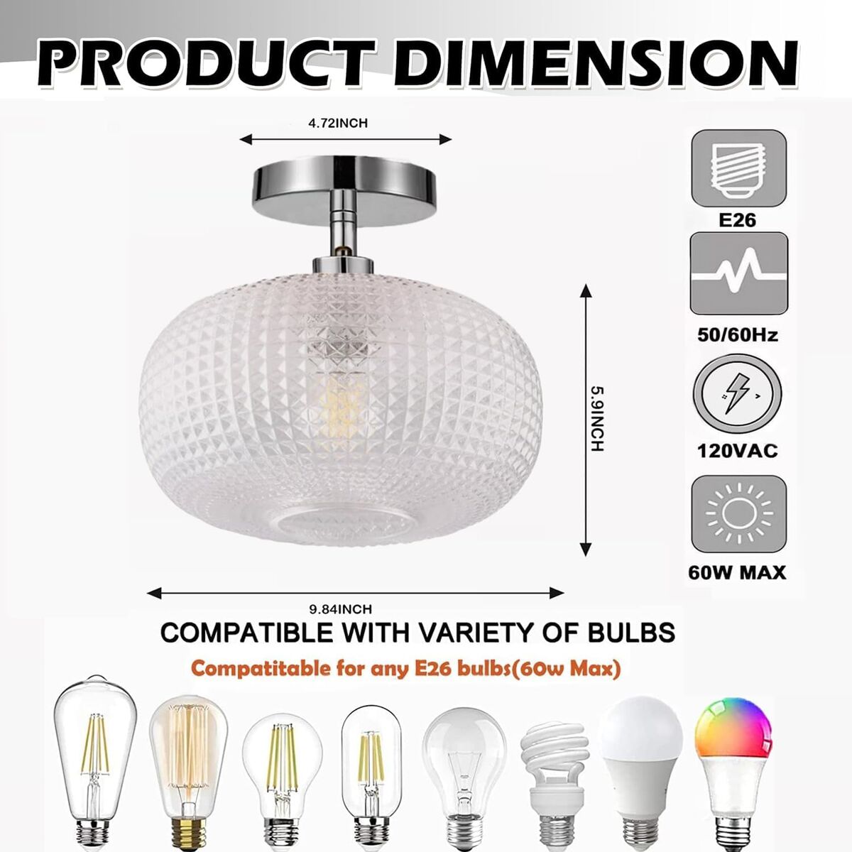 About this item - Unique Design:Semi flush mount ceiling light have an unique pattern with an antique vintage look, adding to the overall elegance of the light.Size:The product size is 9.84" L x 9.84" W x 7.49" H. The ceiling light fixture is beautiful, warm and unique, creating a romantic atmosphere in your home