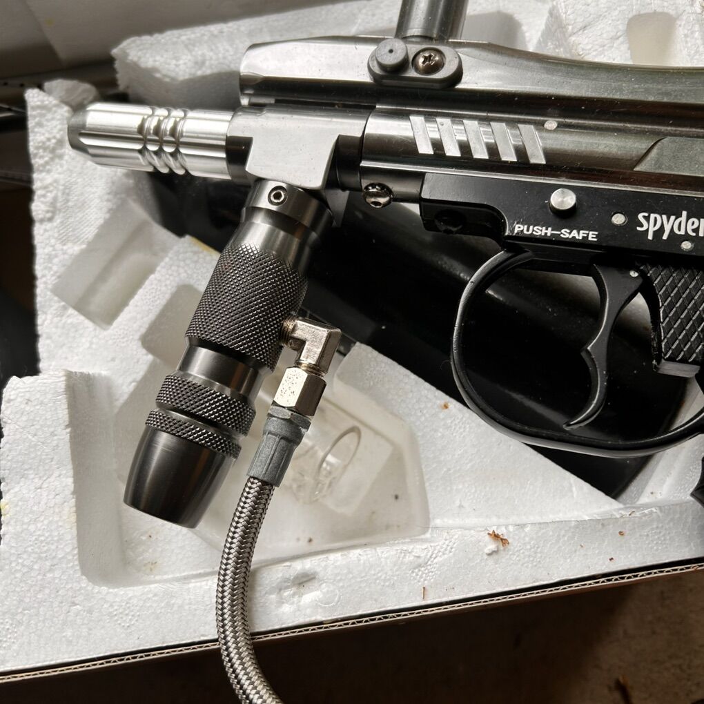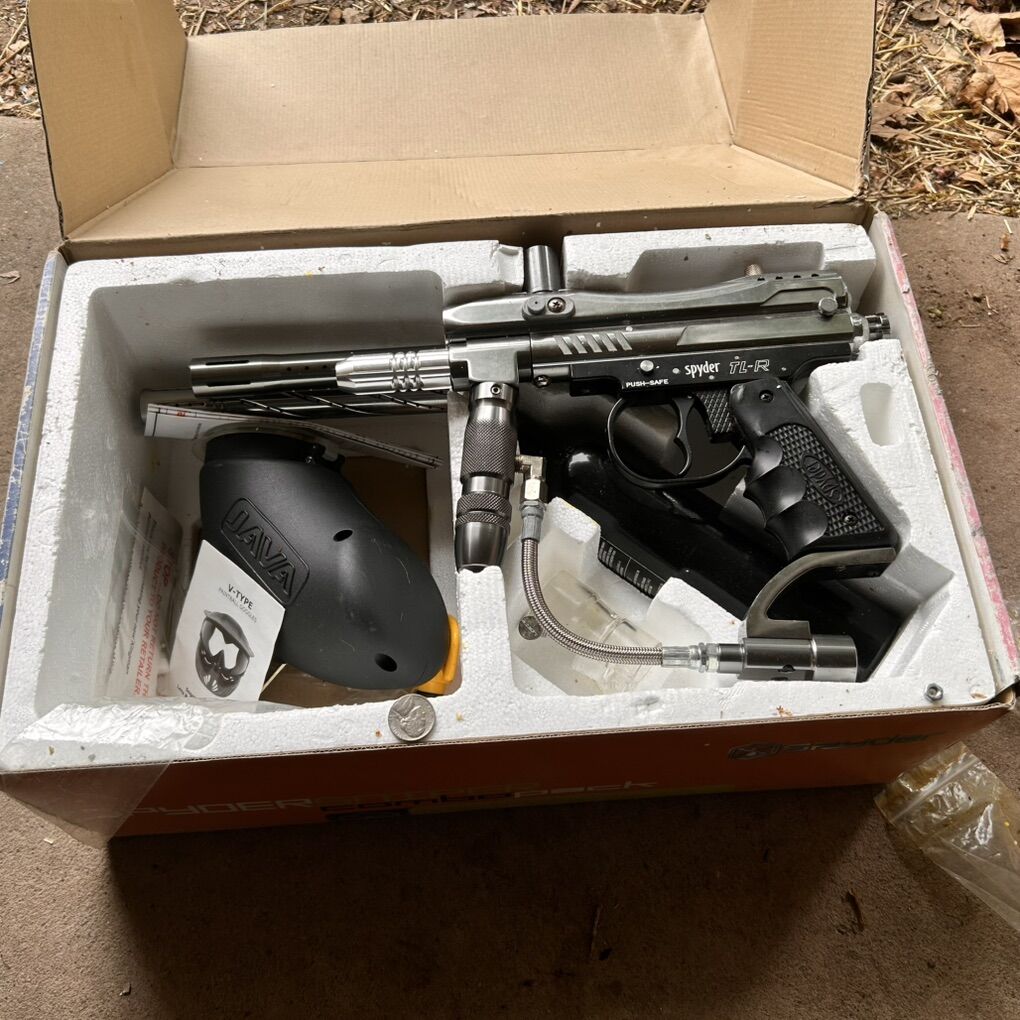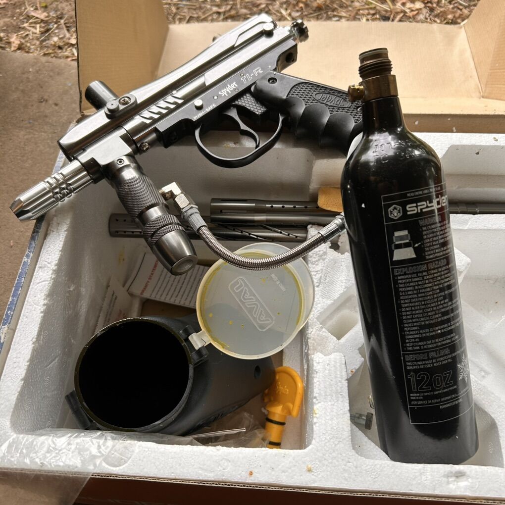 PayPalVintage, indoor stored and only fired once Spyder Assassin combo pack. Still in the box with original accessories, including CO2. The only missing component it’s the mask. It’s in great shape and ready to take out for runs this summer.