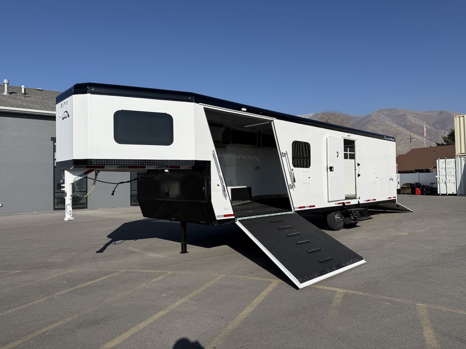 The 2026 RPM by Trails West is here!! Standard Features include a Double Step, Additional 4" of Interior Height, Aluminum Mill Finish on interior, Frameless Windows, and the newly added option of Protech Flooring! This new flooring eliminates the need of having ski glides in the box of the trailer and elevates the floor about 1/2" to keep you from standing in water when all of the snow is melting off your machines and gear! Packages we offer here at the dealership is our Life Elevated Package which includes: Propane Gauges, Garbage Can, Self-Retractable USB Charge Cables, and Ski Glides on the Front Ramp. We also offer Solar Packages to satisfy your needs of power off grid! With our level of expertise we can get you set up in a trailer specified for your needs for you to use for years to come! Come check us out! You won't regret it! The RPM Snowmobile Trailer from Trails West ensures that you travel in style while still being convenient and practical. It comes standard with the Roof and Walls Insulated, LED lights, 40,000BTU Furnace, Premium Stereo, Tons of Charging, a place to hang all your gear and much more. You can’t go wrong with this trailer! Swing on by to check it out for yourself!
