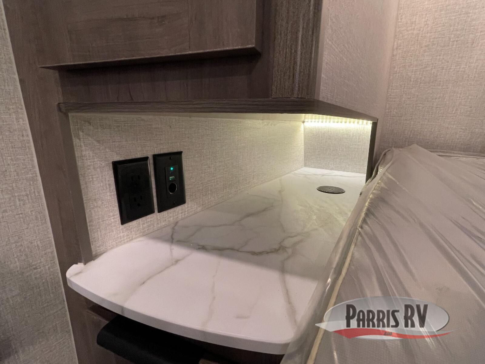 The line-up for the Lance travel trailers centers around three gorgeous interior décor options, a lengthy list of product enhancements, and simplification of ordering with many optional features being made standard. Some of the stand out features you'll want to take note of are the Keyed-Alike storage compartment doors for all of your camping essentials, the dual layer Azdel composite to prevent your unit from rotting, and the durable one-piece roof. The interior includes Euro overhead cabinetry designs, a pop-up electrical/charging tower, and a Shower Miser water system. You'll also find an innerspring mattress with a bedspread, a dual pane shower skylight, USB charging ports to keep your electronics at 100%, plus a JBL AM/FM stereo and JBL interior/exterior Bluetooth speakers to keep the party going!