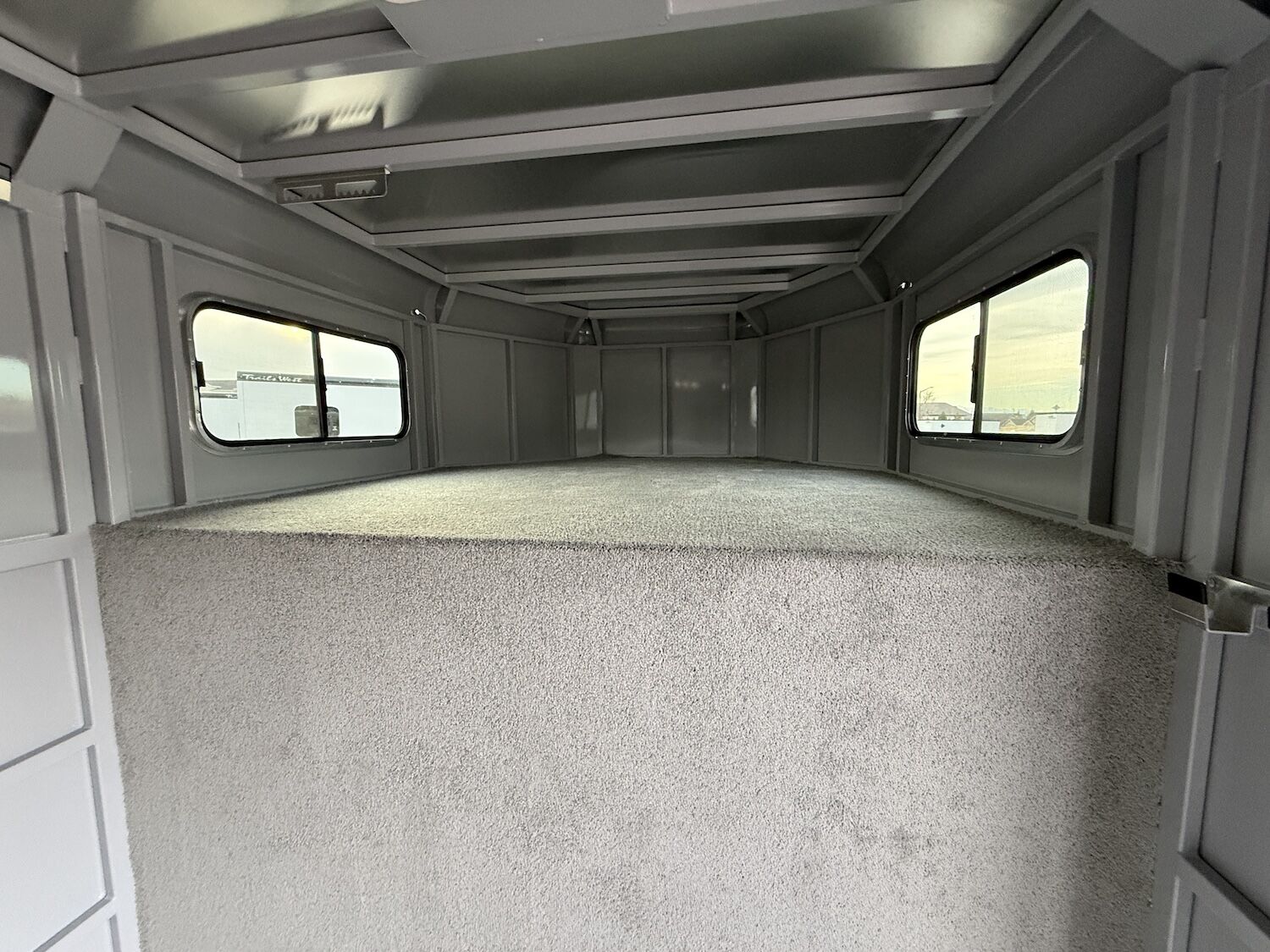 The Adventure MX trailer from Trails West is the best priced steel framed aluminum skinned trailer in the industry. It has the perfect combination of style, user friendly features, and value. This trailer has newly designed aerodynamic front, head side drop down feed windows, tail side sliding windows and rubber wall mats all the way around the horse compartment making it the best equipped trailer in its class.
